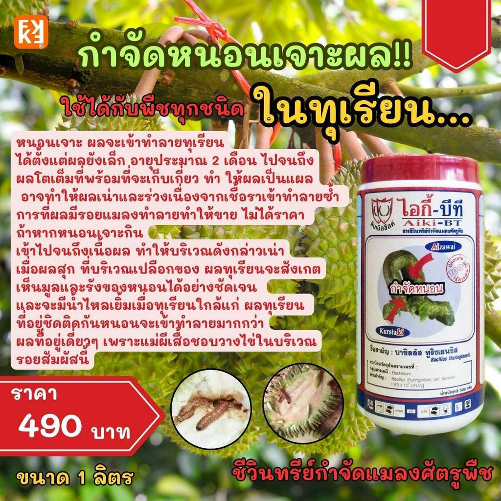 กำจัด หนอนเจาะผล ศัตรูพืชในต้นทุเรียน ไอกี้ – บีที สารชีวินทรีย์ประสิทธิภาพสูง