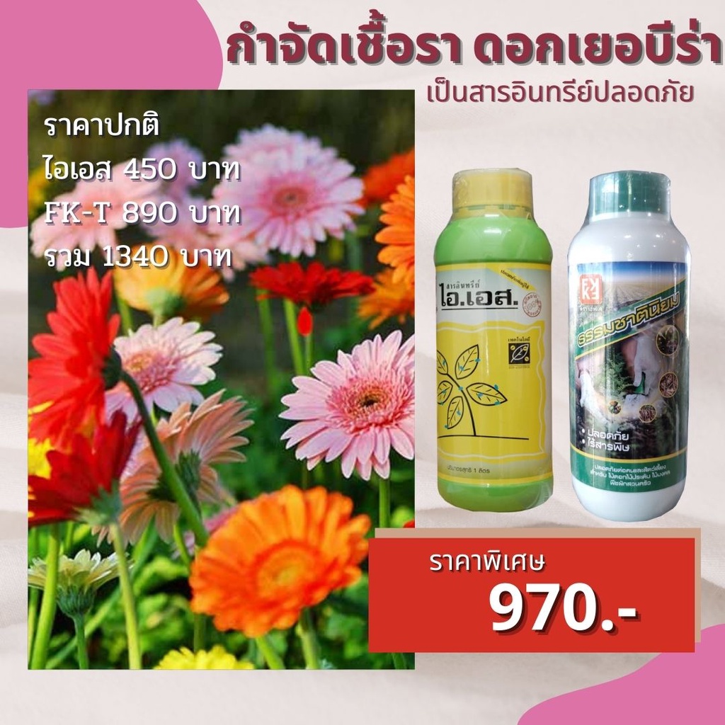 ดอกเยอบีร่า รากเน่า โคนเน่า กำจัดโรคดอกเยอบีร่า จากเชื้อราต่างๆ ปลอดสารพิษ ไอเอส และ FK-T(ใช้ได้ทุกพืช)โดย FK