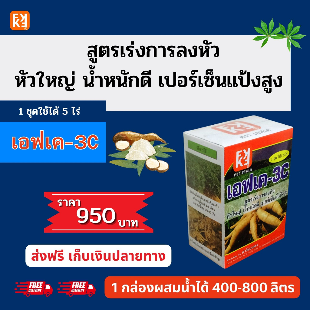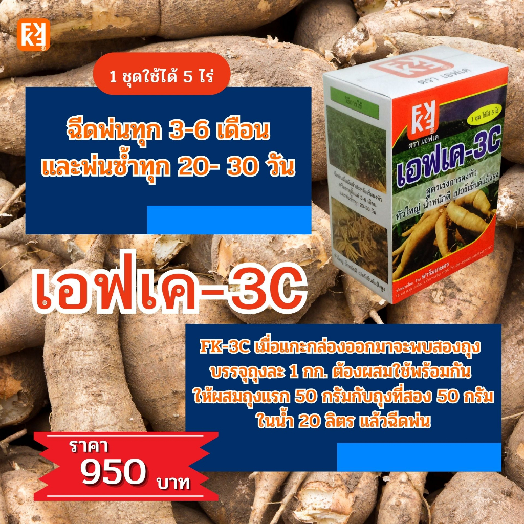 มันสำปะหลัง หัวใหญ่ น้ำหนักดี เปอร์เซ็นแป้งสูง FK-3C ต้นทุนต่อไร่ถูกกว่าปุ๋ยเม็ด 4เท่าเพิ่มผลผลิตสูงสุด20เปอร์เซ็นต์