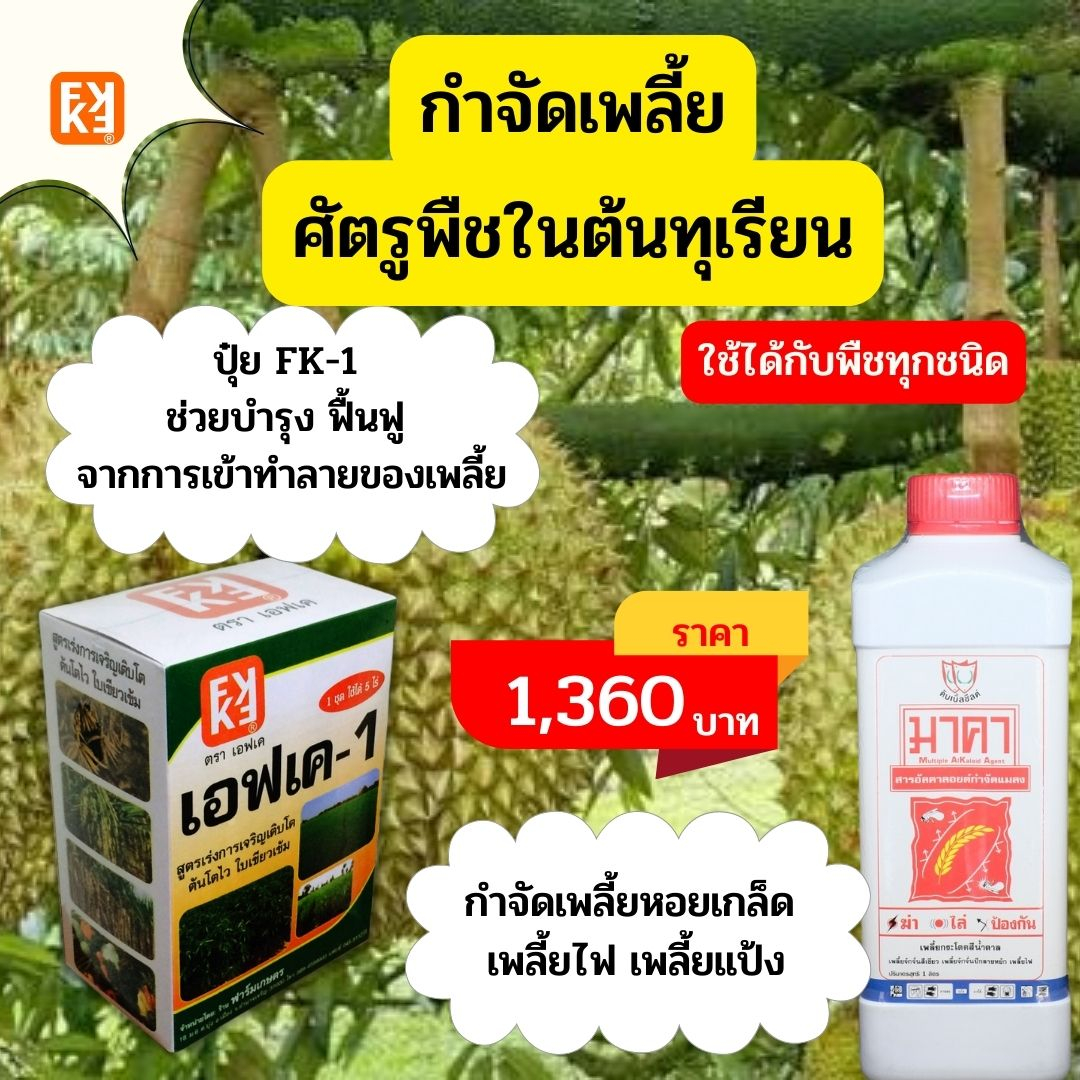 กำจัดเพลี้ย ศัตรูพืชในต้นทุเรียน มาคา สารอัลคาลอยด์สกัดจากธรรมชาติ FK-1 เร่งฟื้นฟูจากการเข้าทำลายของเชืั้อราในต้นทุเรียน