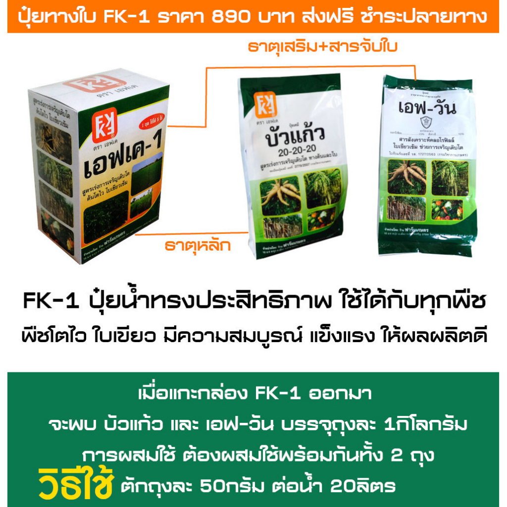 ปุ๋ย FK-1 ฉีดพ่น ทุเรียน ต้นทุนต่อไร่ถูกกว่าปุ๋ยเม็ด 4 เท่า เพิ่มผลผลิตสูงสุด 20 เปอร์เซ็นต์ 1 กล่องผสมน้ำได้ 400-800 ลิ