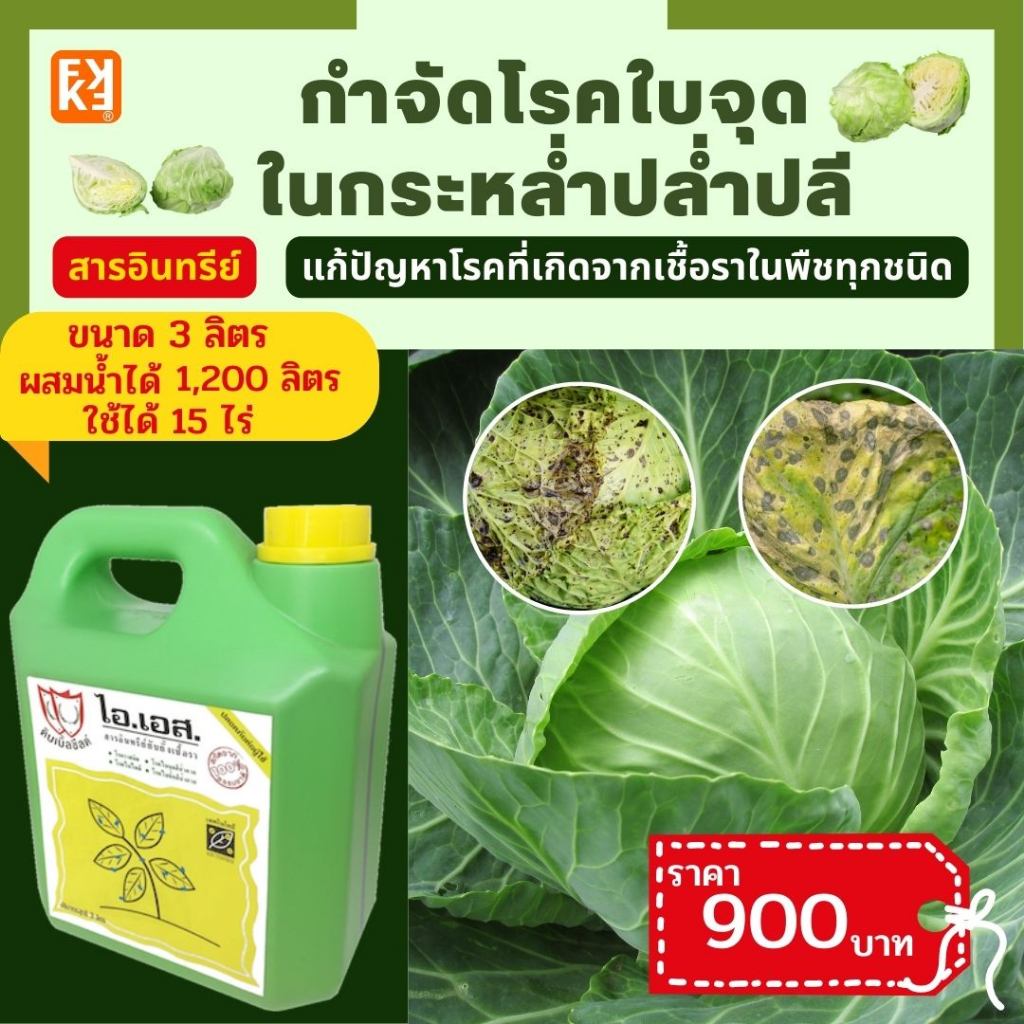ยากำจัดโรคใบจุด ใน กระหล่ำปลี โรคที่เกิดจากเชื้อรา ฉีดพ่นไอเอสใช้ได้กับพืชทุกชนิด (ขนาด 3 ลิตร ใช้ได้15 ไร่)