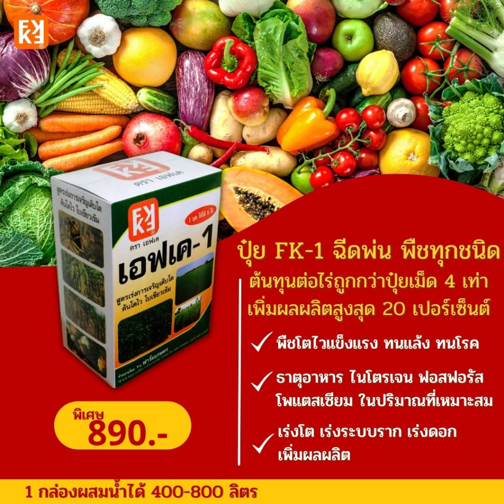 ปุ๋ย FK-1 ฉีดพ่น พืชทุกชนิด พืชโตไว ใบเขียวเข้ม ต้นทุนต่อไร่ถูกกว่าปุ๋ยเม็ด 4 เท่า เพิ่มผลผลิตสูงสุด 20เปอร์เซ็นต์