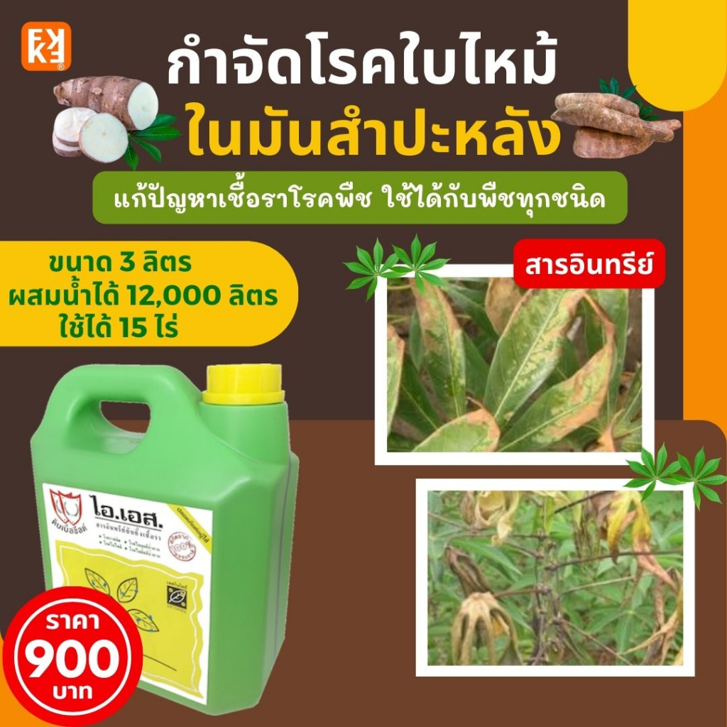 ยากำจัดโรคใบไหม้ ใน มันสำปะหลัง โรคที่เกิดจากเชื้อรา ฉีดพ่นไอเอสใช้ได้กับพืชทุกชนิด (ขนาด 3 ลิตร ใช้ได้15 ไร่)