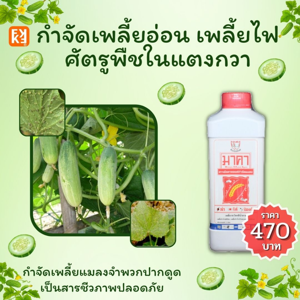 ยาฆ่าเพลี้ยอ่อน เพลี้ยไฟ แมลงจำพวกปากดูด ใน แตงกวา เป็นสารชีวภาพปลอดภัย ปลอดสารพิษ มาคาและ FK-T(ใช้ได้ทุกพืช)โดย FK