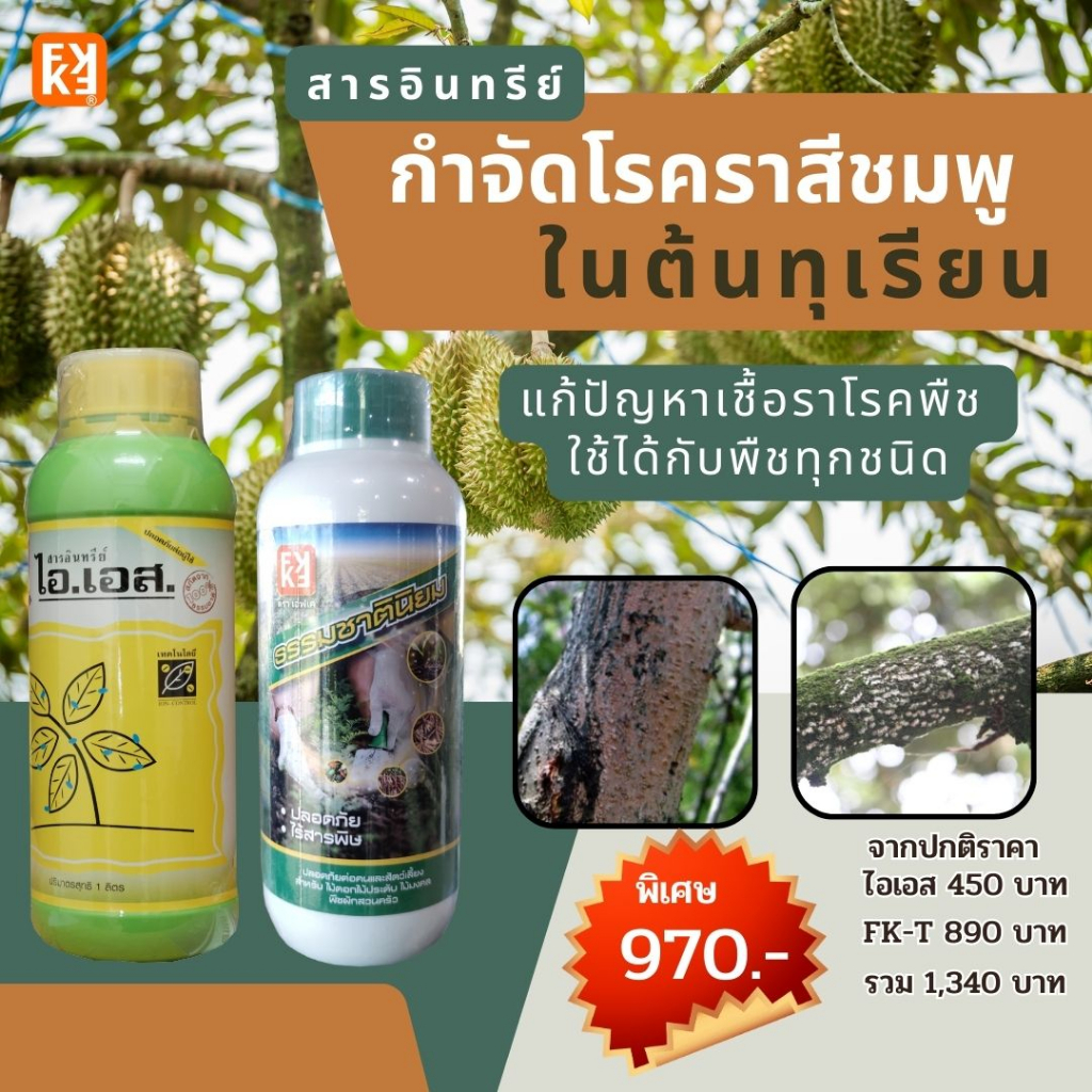 กำจัดโรคราสีชมพู โรคที่เกิดจากเชื้อรา ศัตรูพืชในทุเรียน ไอเอส และ FK-T ธรรมชาตินิยม ฟื้นฟูจากการทำลายของเชื้อรา