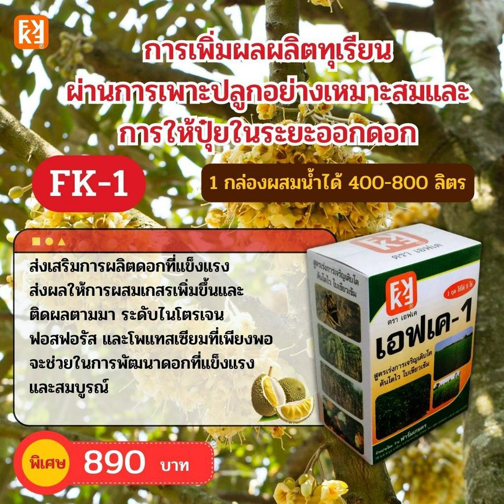 ปุ๋ยฉีดพ่นทางใบ FK-1 ฉีดพ่นทุเรียน การเพิ่มผลผลิตทุเรียนผ่านการเพาะปลูกอย่างเหมาะสมและการให้ปุ๋ยในระยะออกดอก