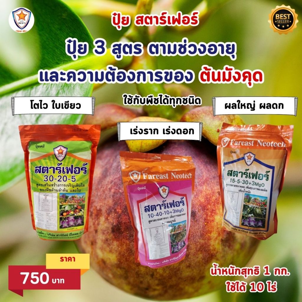 มังคุด โตไว ใบเขียว เร่งราก เร่งดอก ขยายขนาด เม็ดใหญ่ ลดก เพิ่มน้ำหนัก เพิ่มคุณภาพ ผลผลิต ด้วย ปุ๋ย สตาร์เฟอร์