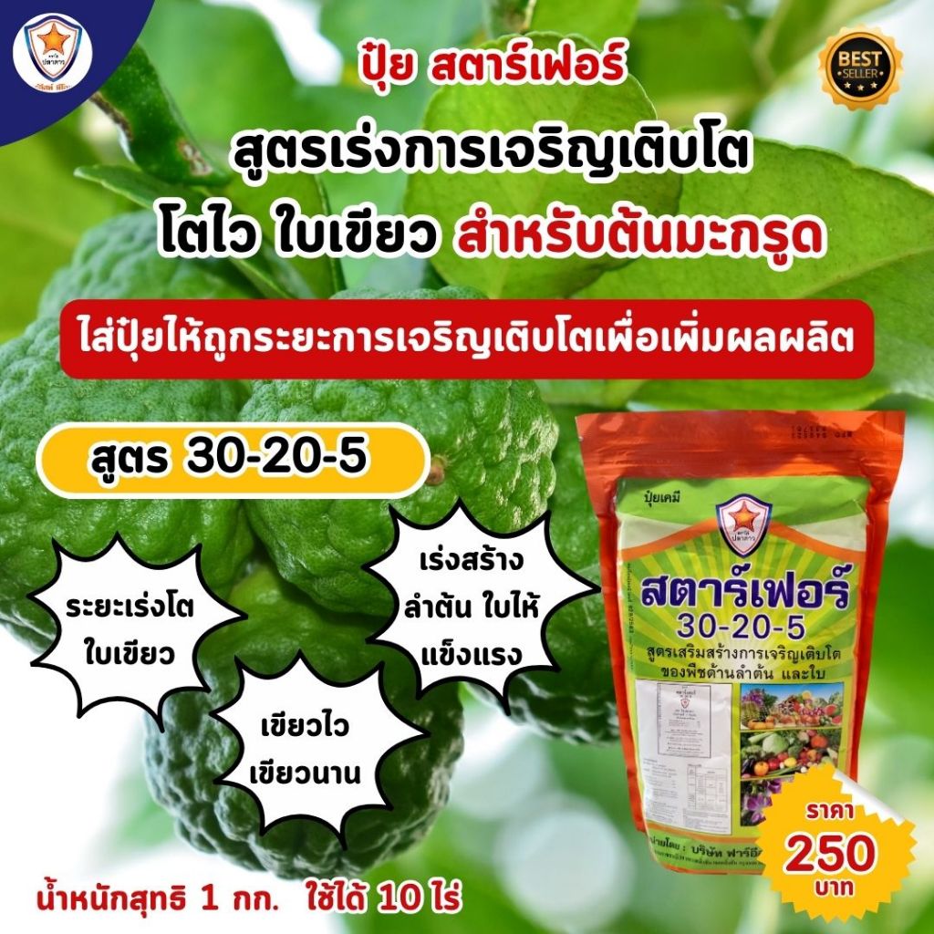 มะกรูด โตไว ใบเขียว เร่งราก เร่งดอก ขยายขนาด เพิ่มน้ำหนัก เพิ่มคุณภาพ ผลผลิต ด้วย ปุ๋ย สตาร์เฟอร์