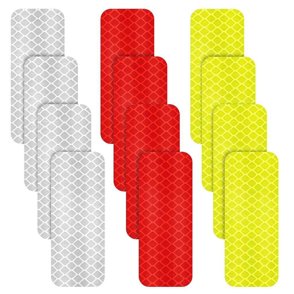 12ชิ้น3x8เซนติเมตรเตือนสติ๊กเกอร์สะท้อนแสงความปลอดภัยสติ๊กเกอร์สะท้อนแสงคืนวิสัยทัศน์กาวสติกเกอร์กันน้ําสะท้อนแสงเทปสติกเกอร์สําหรับรถรถจักรยานย