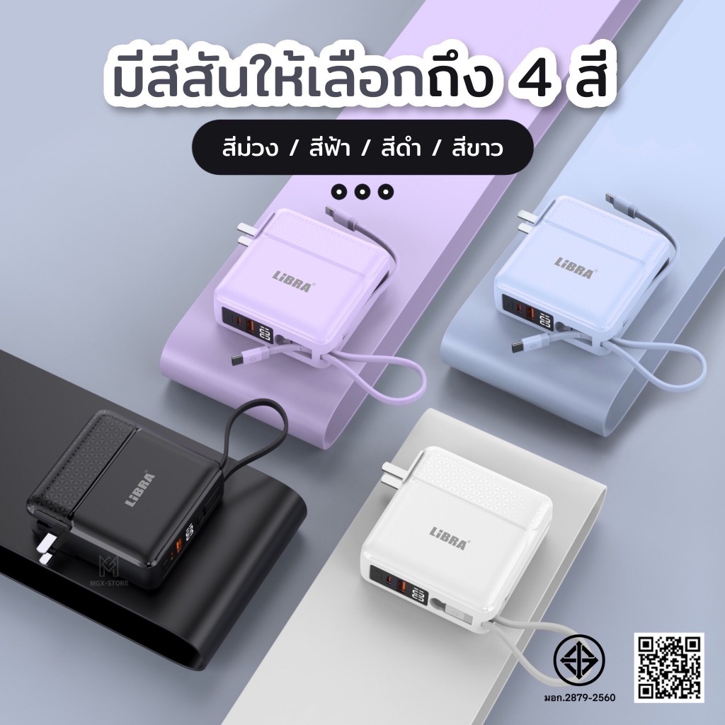LiBRA PowerBank 30000mAh พาวเวอร์แบงค์ Fast Charge PD22.5W ชาร์จเร็ว มีสายชาร์จและขาปลั๊กในตัว หน้าจอLED [รับประกัน 1ปี]