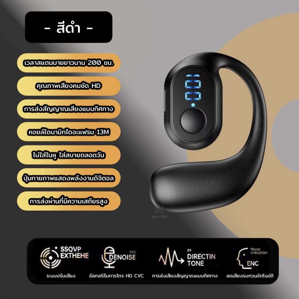 M9 หูฟังคล้องหูบลูทูธ5.4 เสียงทิศทางอัจฉริยะ คุณภาพเสียงสเตอริโอHi-Fi จอแสดงLED พอตชาร์จ Typ
