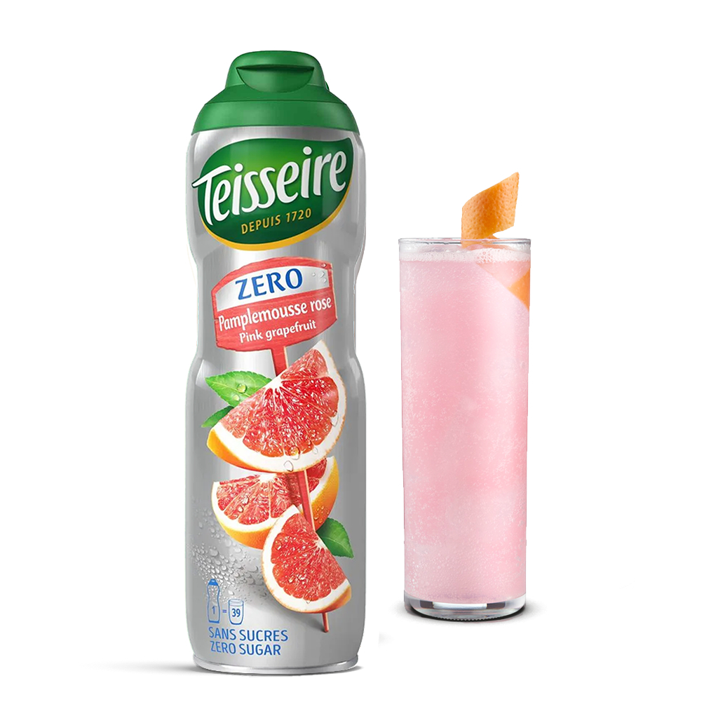Teisseire น้ำเชื่อมกลิ่นพิงค์เกรปฟรุ๊ต สูตรไม่มีน้ำตาล 600 มล. (Pink Grapefruit Zero Sugar Syrup)