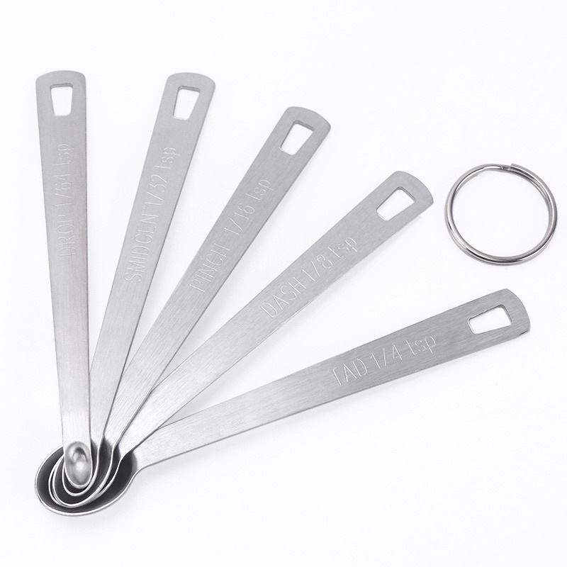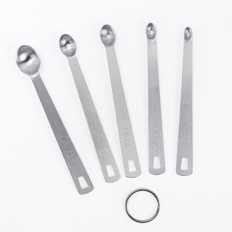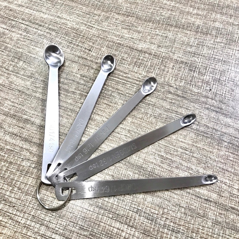 Bakery D'VER ❤️ ช้อนตวงสแตนเลสจิ๋ว 1/4, 1/8, 1/16, 1/32 และ 1/64 ชุดช้อนตวงส่วนผสมหยิบมือ 5 ชิ้น
