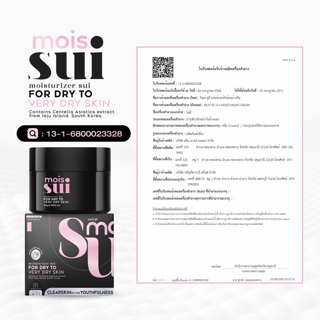 มอยส์ซาลาเปา สูตรผิวเกาหลี Richse sui moisturizer cream 20 g. (ล็อคผิวฉ่ำโกลว์)