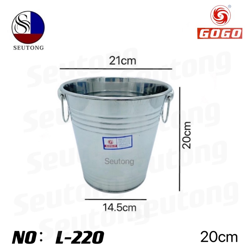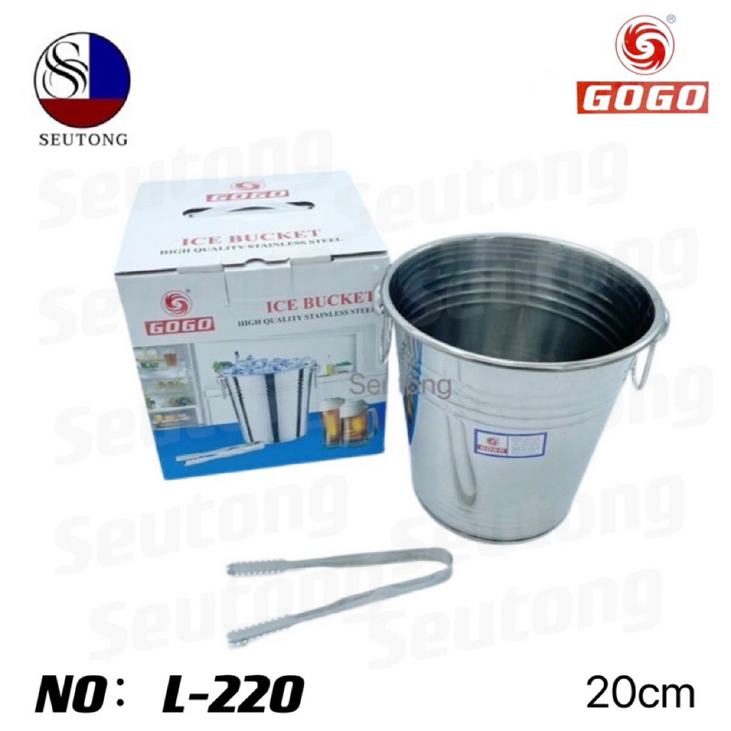 GOGO ถังไวท์/ถังน้ำแข็ง+แถมที่คีบ1อัน(สแตนเลส)ขนาด20ซม. รุ่น L-220