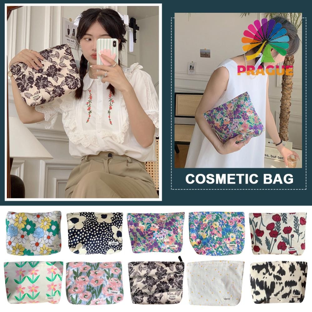 กระเป๋าเครื่องสำอางทรงคลัทช์ขนาดใหญ่ สไตล์ญี่ปุ่นดอกไม้ สำหรับผู้หญิง