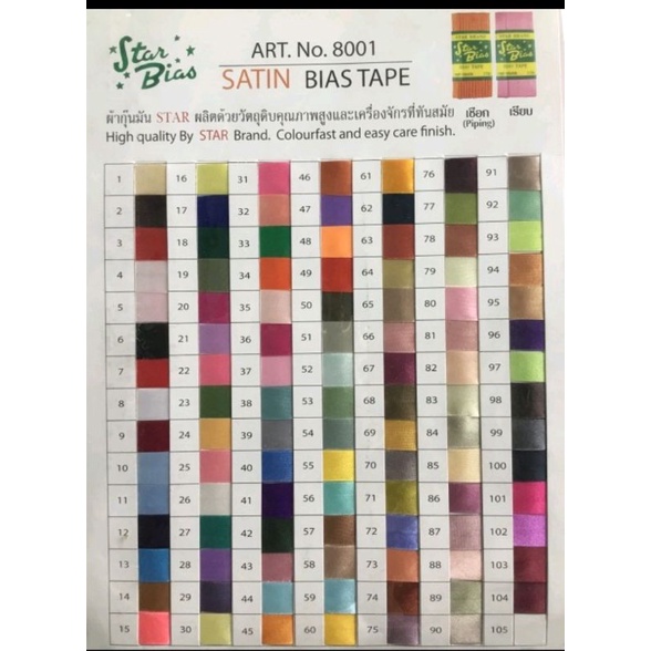 ผ้ากุ้นซาติน star 📌 (กุ๊นแบน.กุ๊นเชือก)3หลา📌แบบมัน