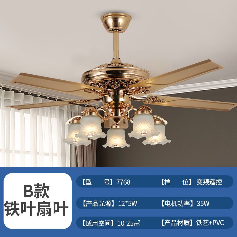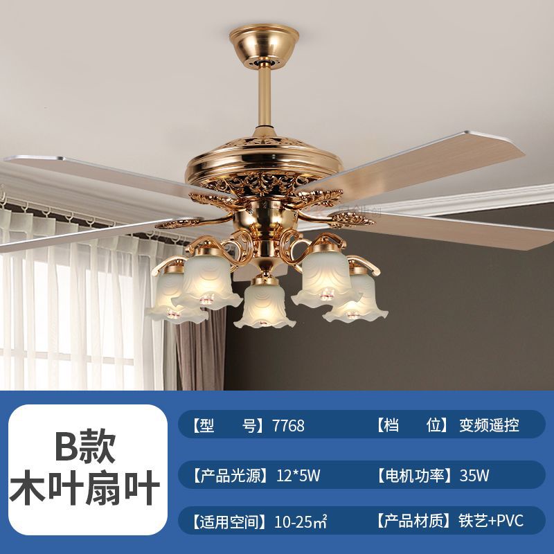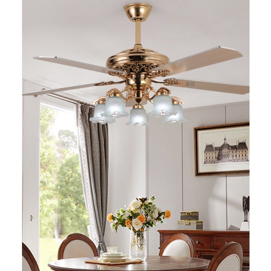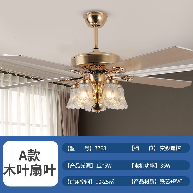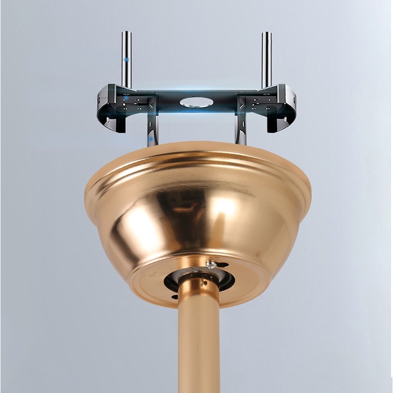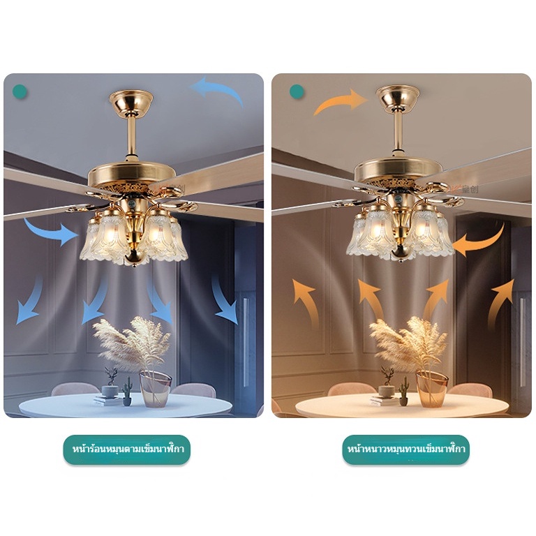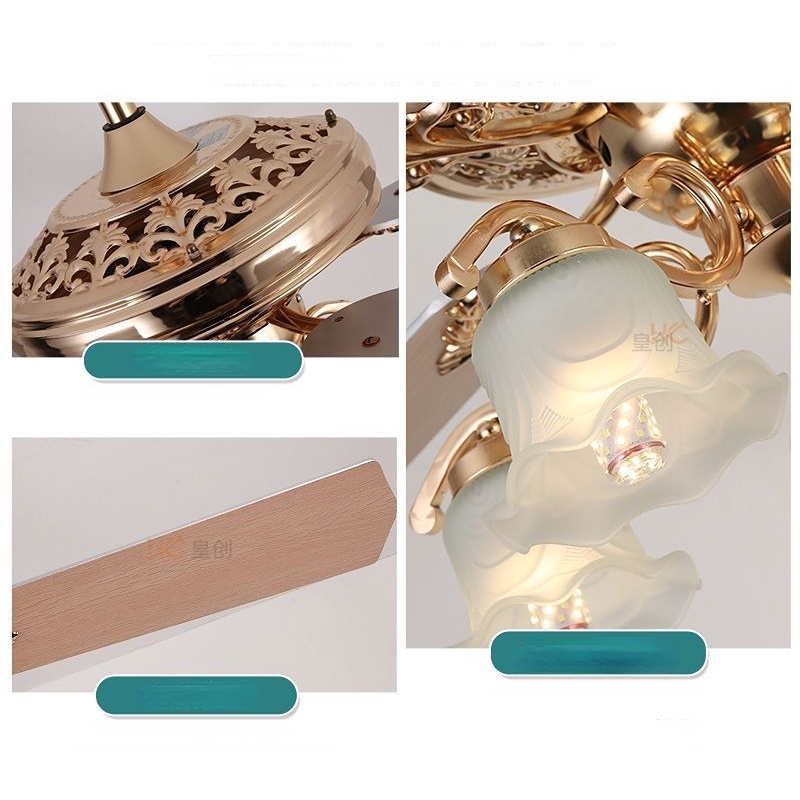 โคมไฟพัดลมเพดาน 4 ใบพัดสำหรับใช้ในห้องรับแขก ไฟพัดลมแปลงความถี่อัจฉริยะสีทอง ขนาด52นิ้ว
