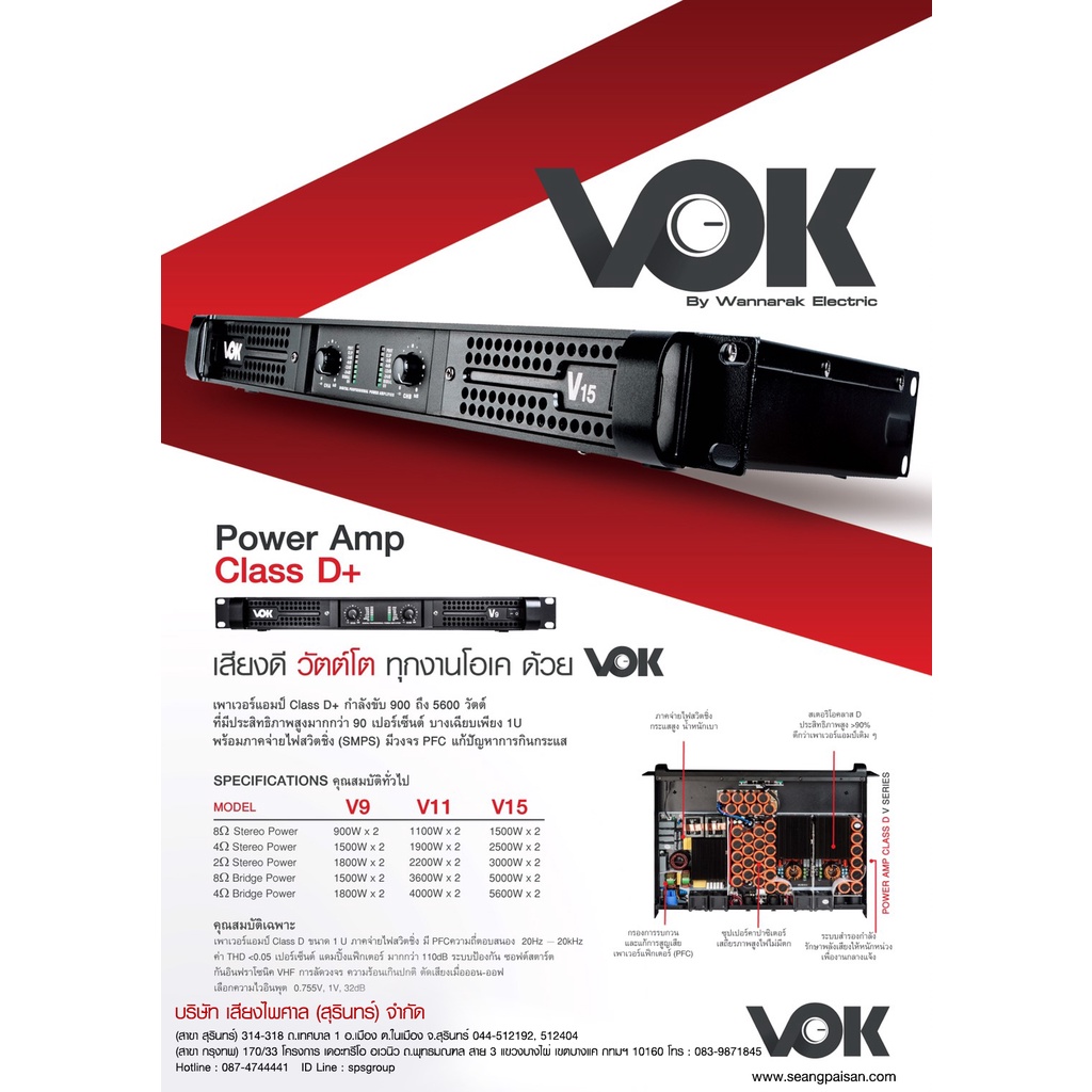 POWER PA เพาเวอร์ พีเอ พาวเวอร์แอมป์ รุ่น V15 ยี่ห้อ VOK สินค้าพร้อมส่ง ส่งไววววว Power Amp Class D+