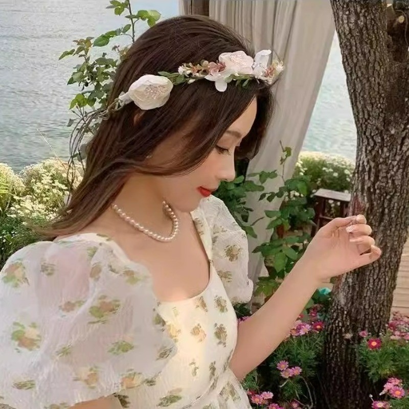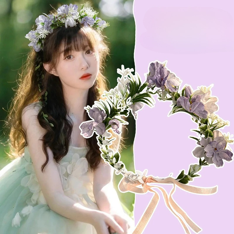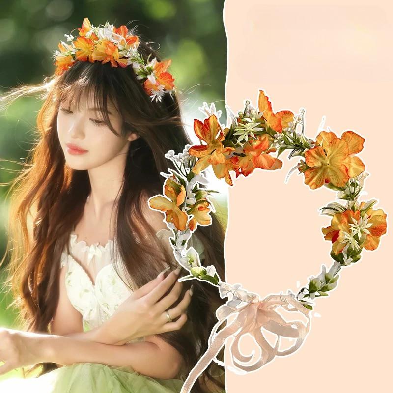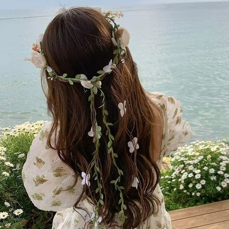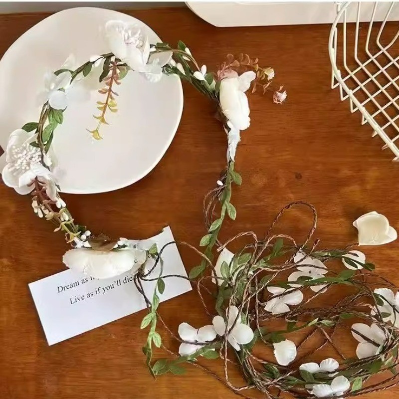 ดอกไม้คาดศีรษะสำหรับเจ้าสาว พร้อมหูฟัง ออกแบบสไตล์เอลฟ์ สวยงามและสะดวกในการสวมใส่