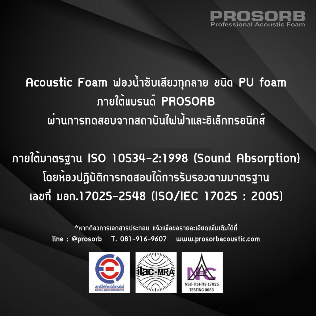 (4 ชิ้น/แพ๊ค) แผ่นฟองน้ำซับเสียง Acoustic Foam LINER PANEL ลดเสียงก้อง ฟองน้ำเหนียว แน่น by Prosorb