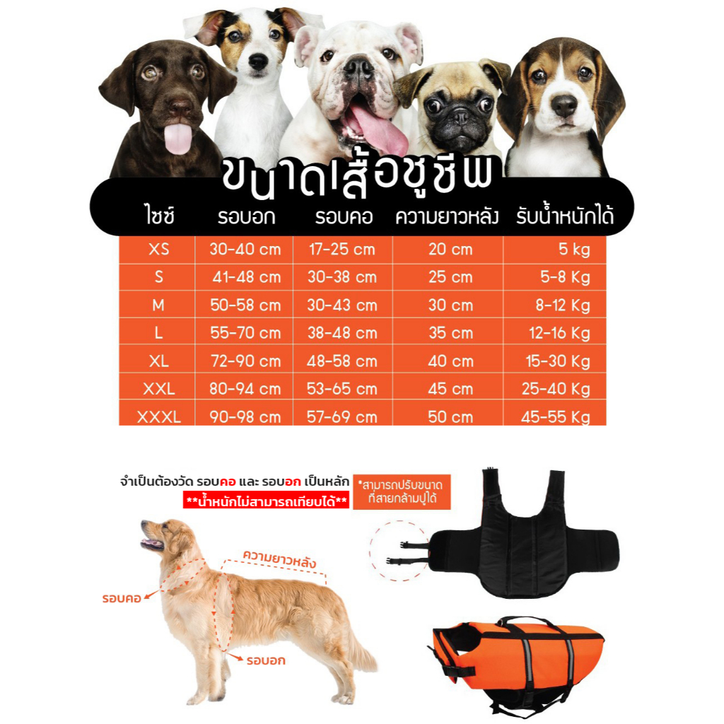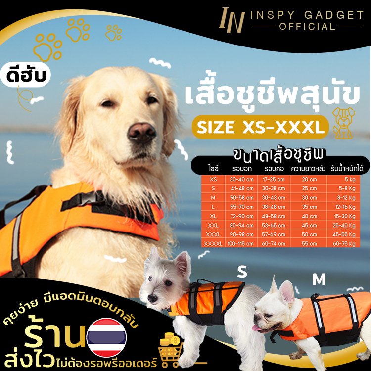 ชูชีพน้องหมา ไซส์ XS-XXXL 🐶 มีรีวิวให้ดู ชูชีพสุนัข เสื้อชูชีพสุนัข เสื้อชูชีพหมาใหญ่ ฟรี ถุงเก็บอึ จนกว่าของจะหมด
