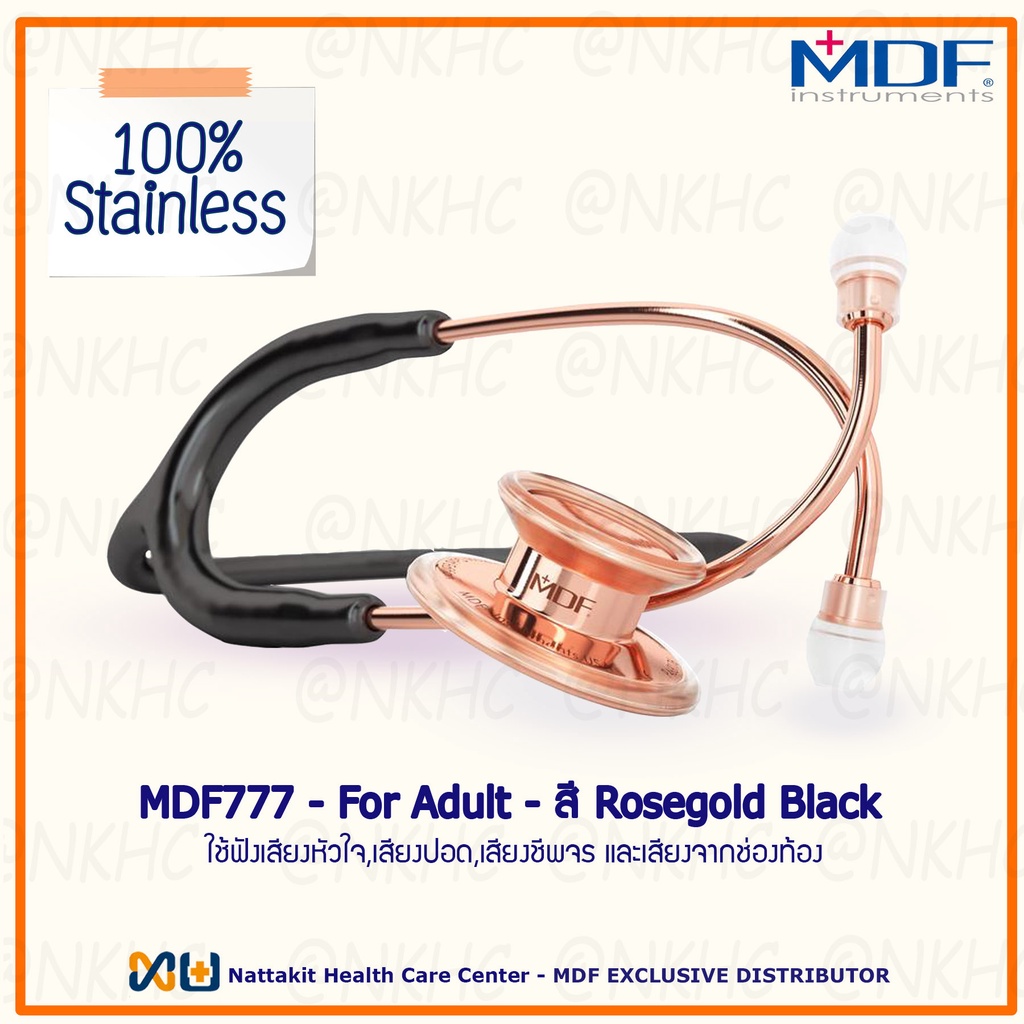 MDF777#RG11 หูฟังทางการแพทย์ Stethoscope ยี่ห้อ MDF MD One (สีโรสโกลด์ - ดำ Rose Gold) สำหรับผู้ใหญ่