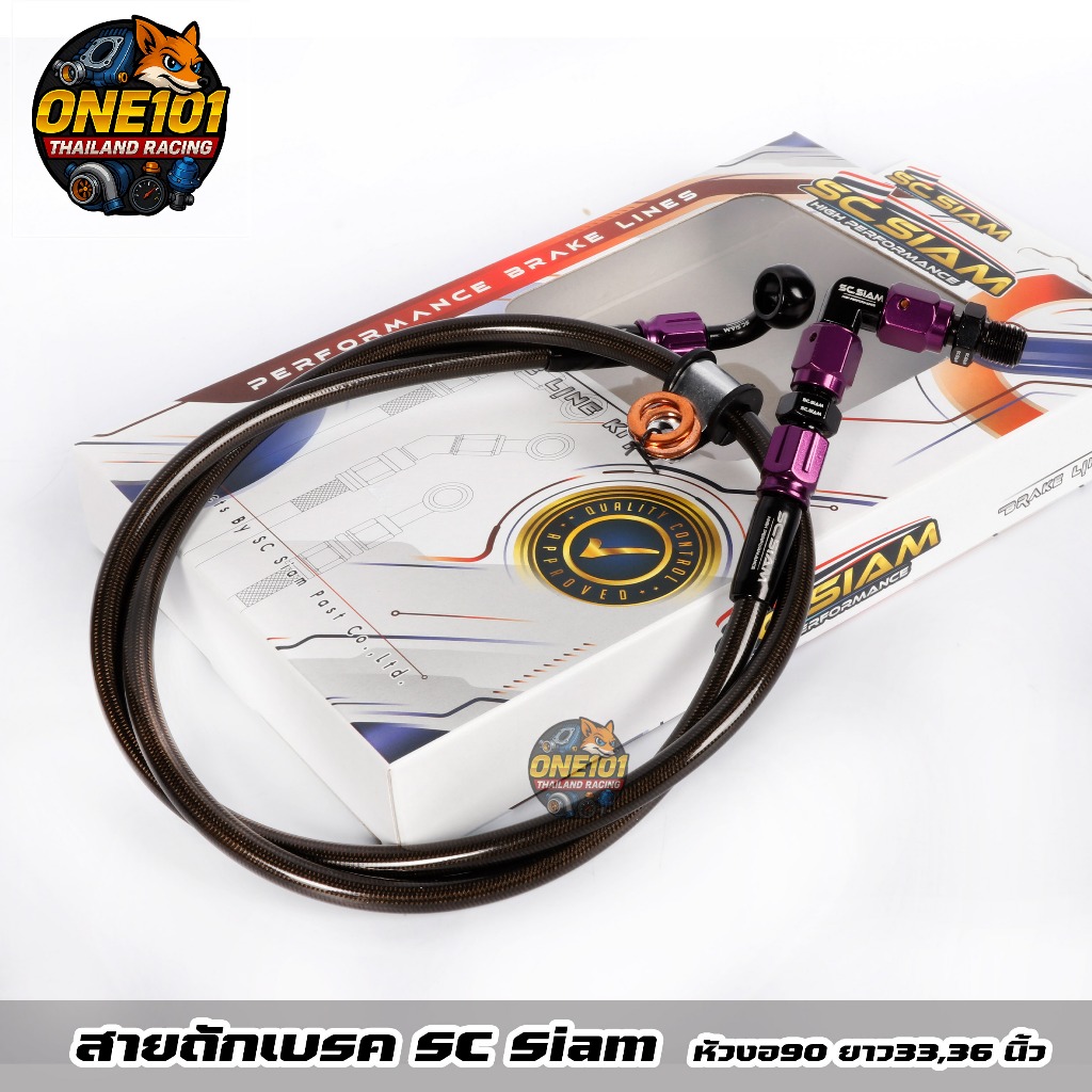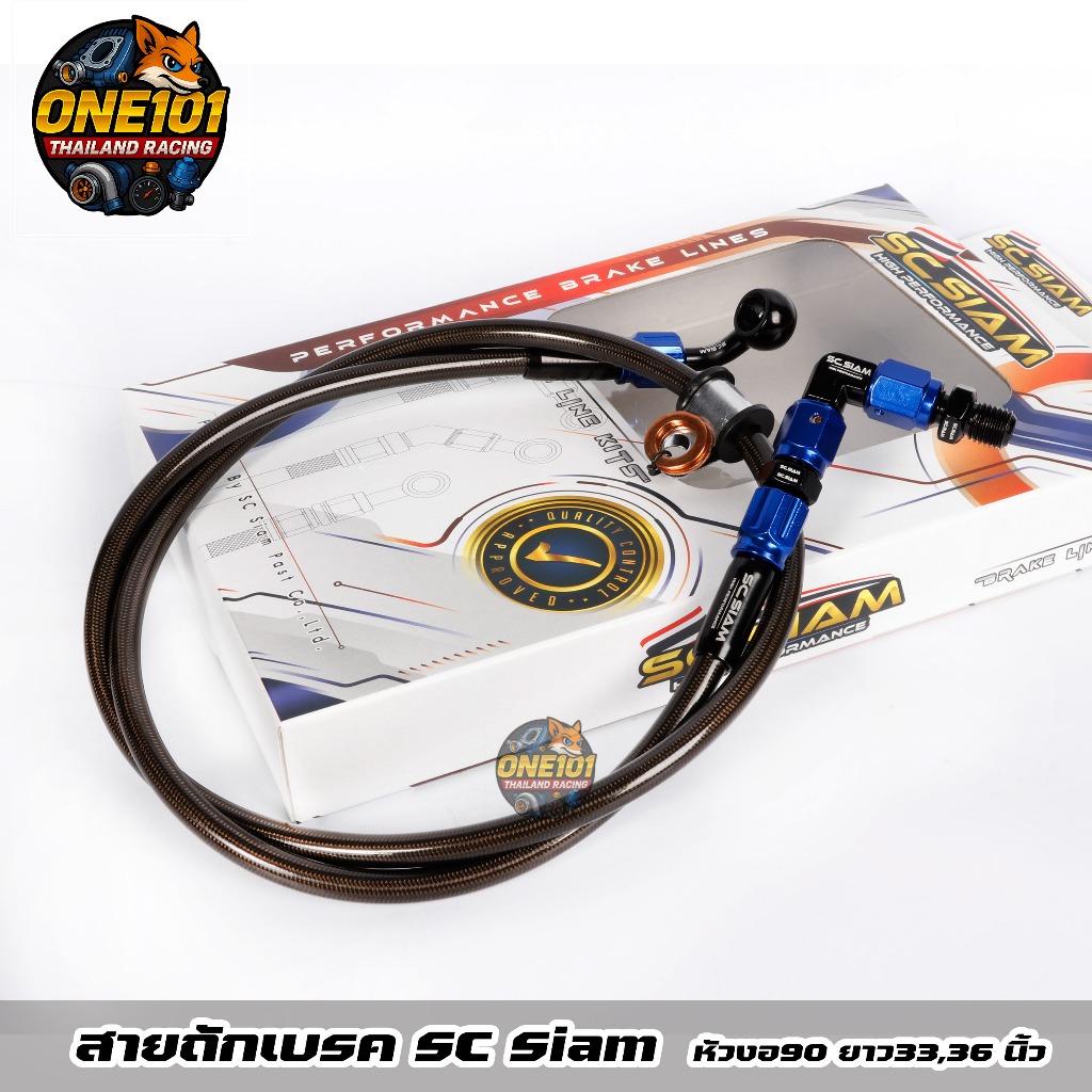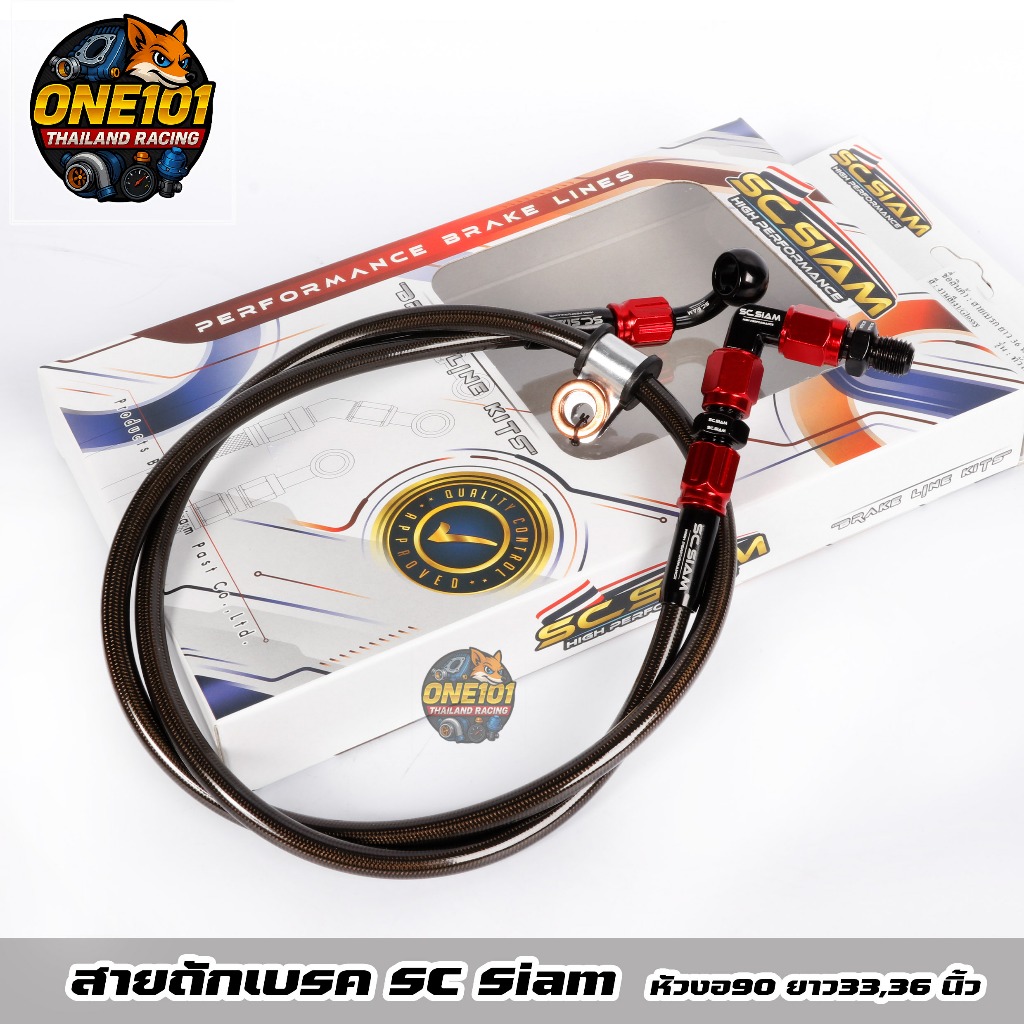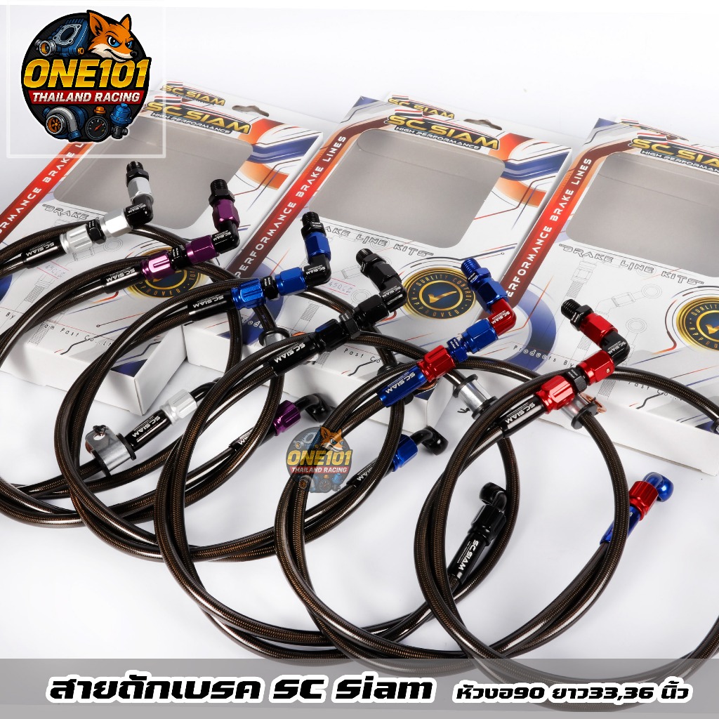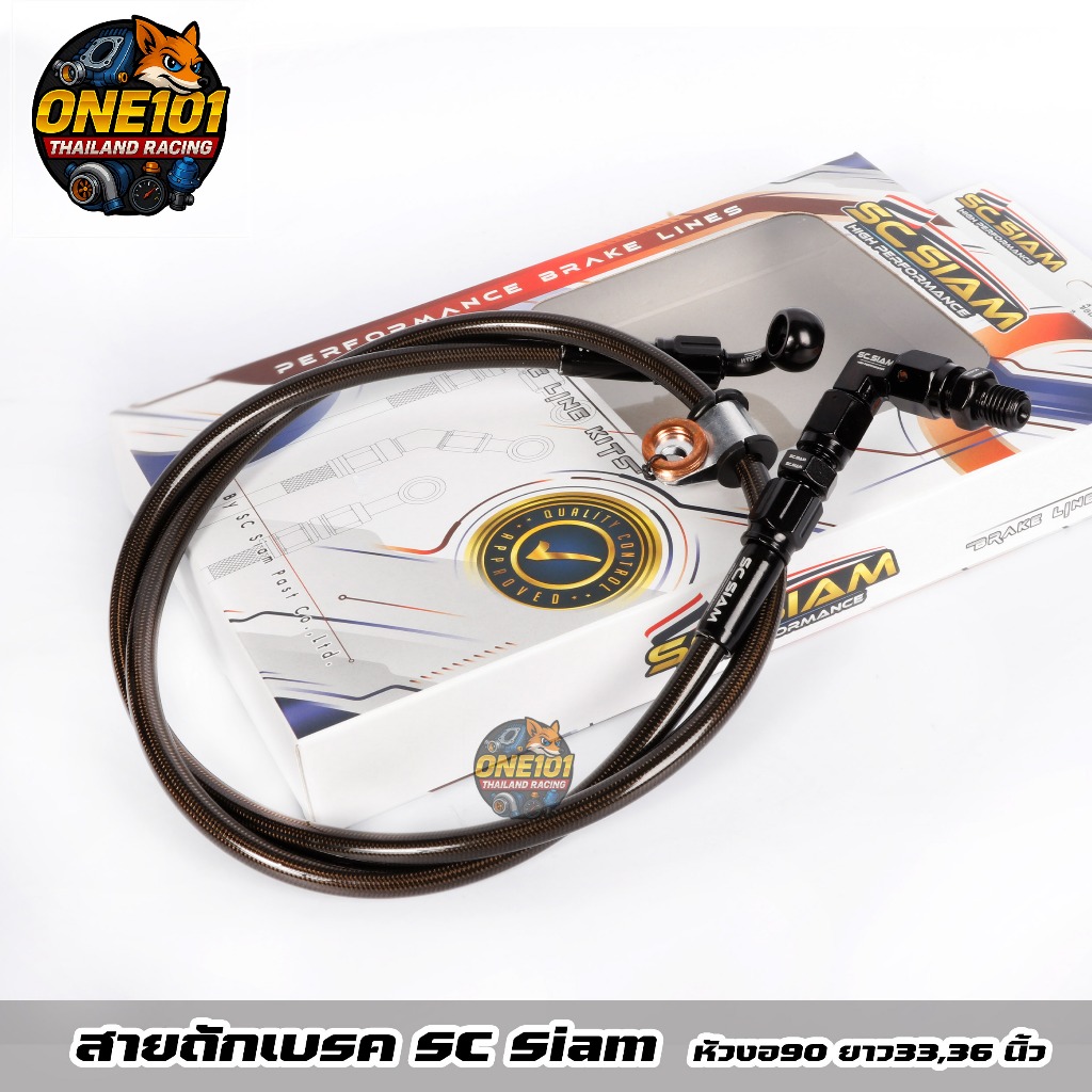 สายถักเบรค NEW SC Siam หัวงอ90 ยาว33,36 นิ้ว กล่องขาวใส่วาล์วปลดได้ รับประกันทุกเส้น