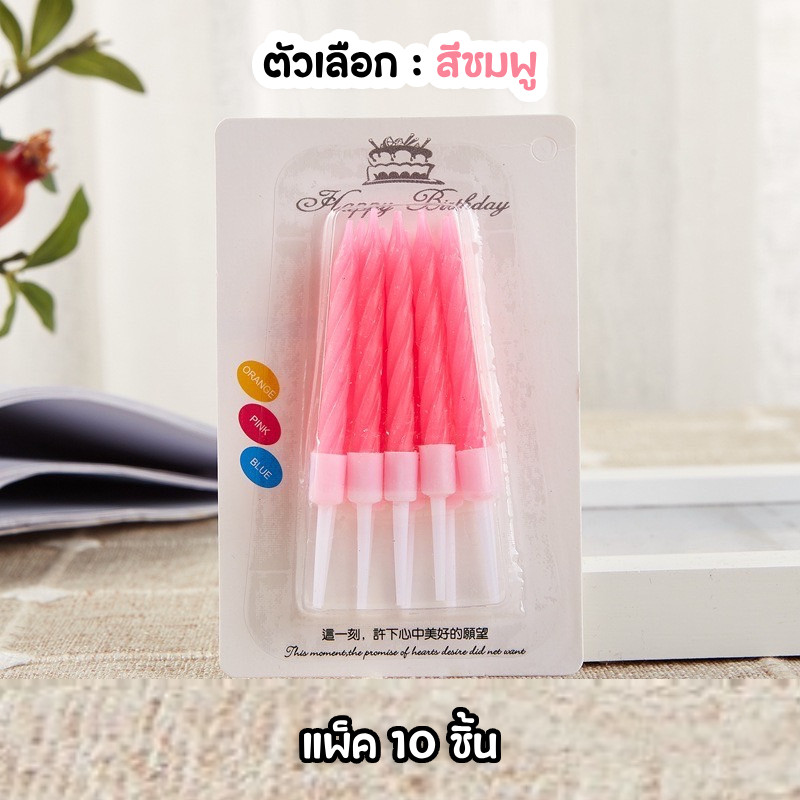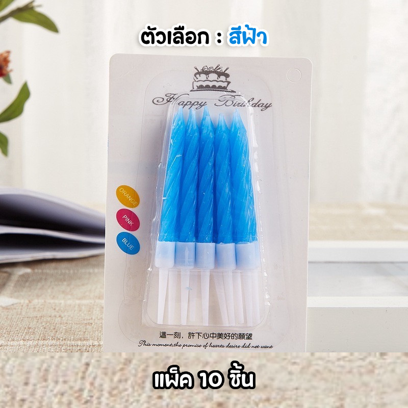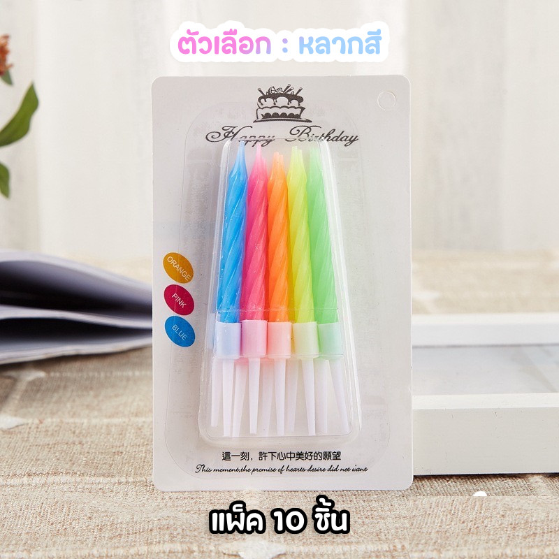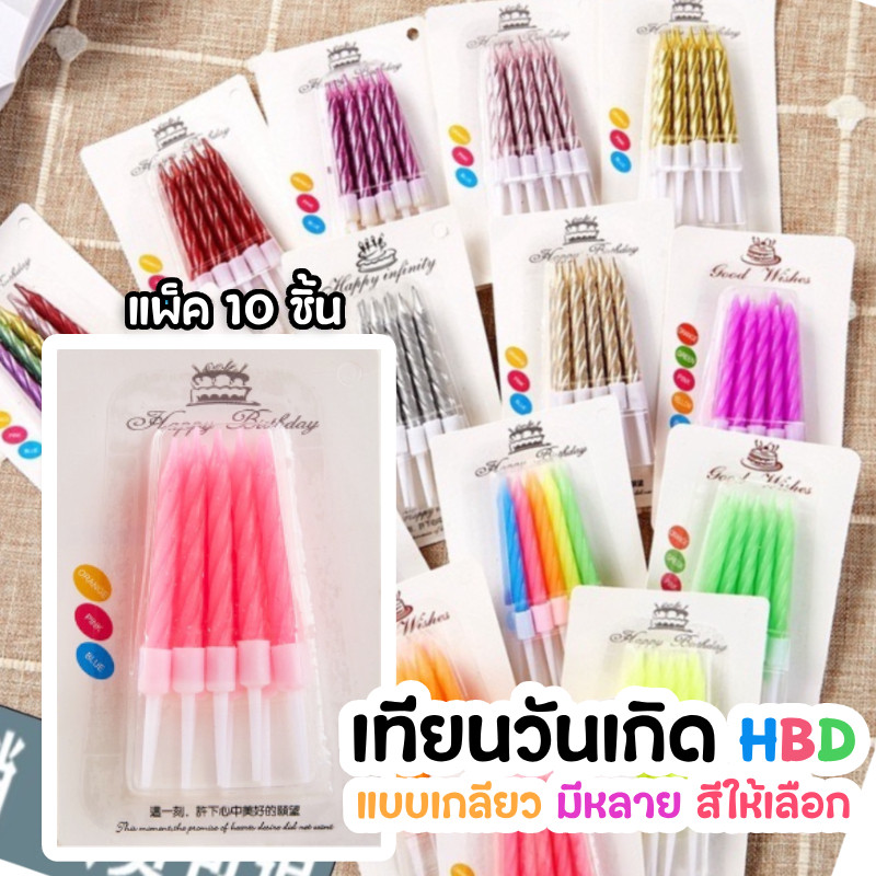 (สินค้าพร้อมส่งจากไทย) เทียนวันเกิด เทียนวันเกิดแบบเกลียว 1 แพ็ค 10 แท่ง สีสดใส เทียน HBD 🎂 N8