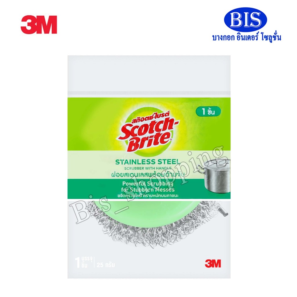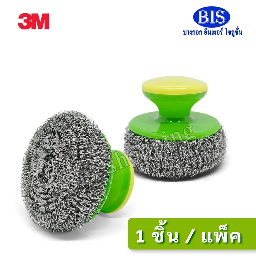 3M Scotch-Brite สก๊อตช์-ไบรต์ ฝอยสเตนเลสพร้อมด้ามจับขนาด 25 กรัม (1 ชิ้น/แพ็ค)
