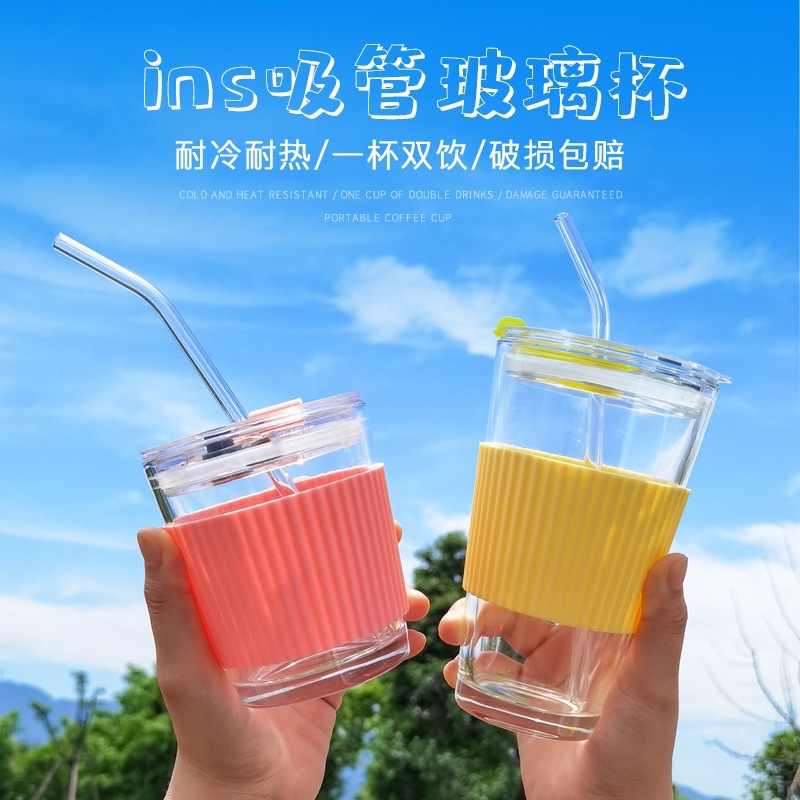แก้วน้ำ ใส่กาแฟ สไตล์มินิมอล กันหก มาพร้อมหลอด 💕 สีพาสเทลมาใหม่