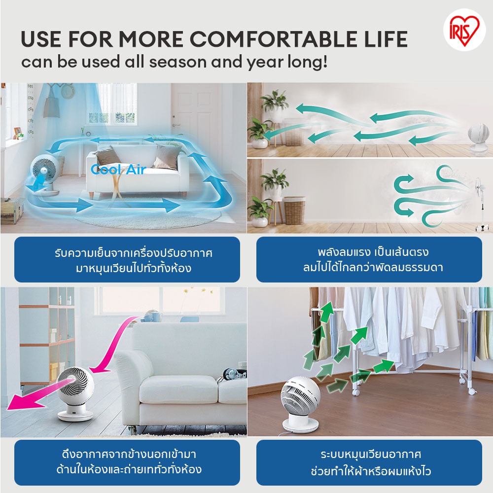 [3 Years warranty] IRIS OHYAMA ไอริส โอยามะ พัดลมหมุนเวียนอากาศ พัดลมตั้งโต๊ะ WOOZOO รุ่น PCF-SC15T และ PCF-SC15T-CT