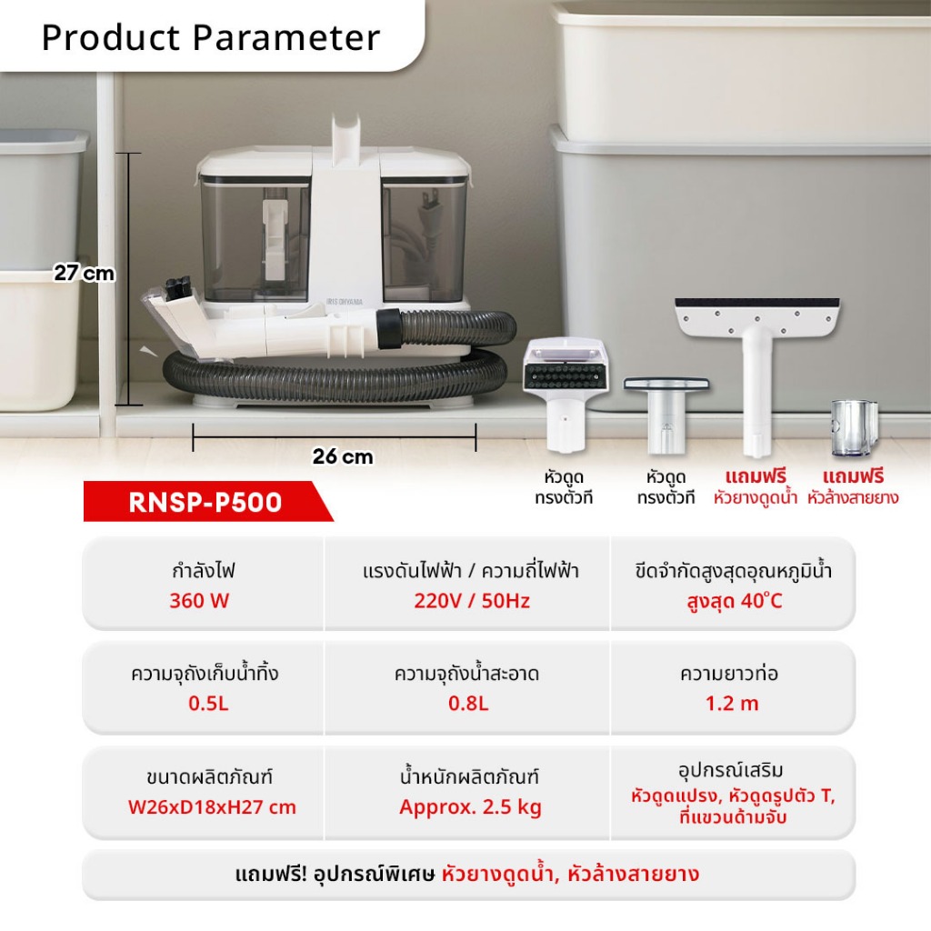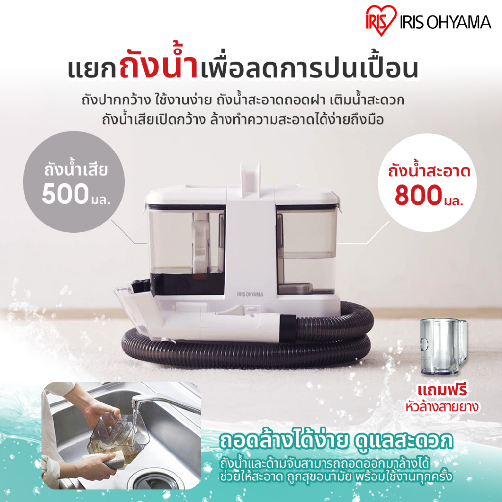 New Arrival! IRIS OHYAMA ไอริส โอยามะ เครื่องทำความสะอาดพรม เบาะผ้า เฟอร์นิเจอร์ผ้า ฟรีหัวแปรงพิเศษ 3 หัว รุ่น RNSP-P500