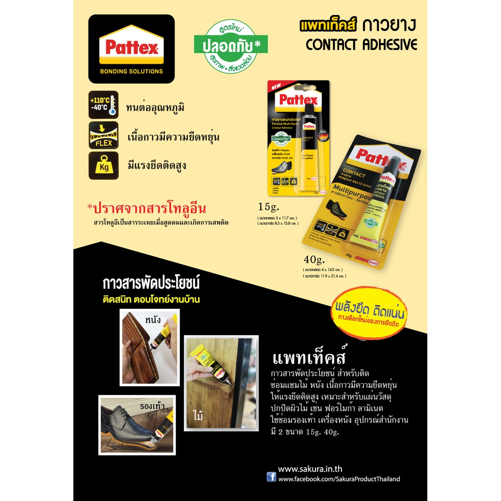 กาวยางอเนกประสงค์ Pattex กาวยาง ติดรองเท้า แพทแท็คส์ ขนาด 15g / 40g