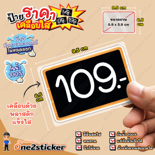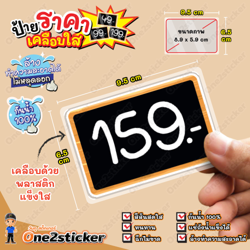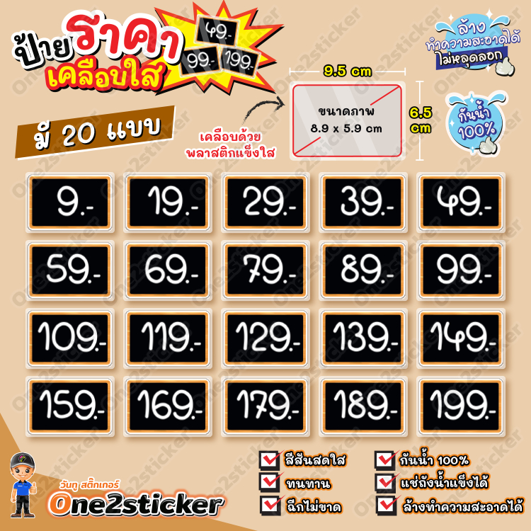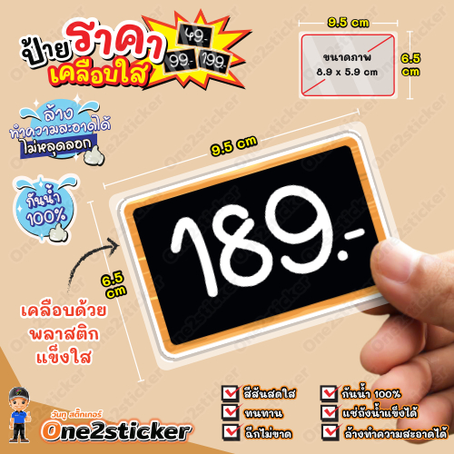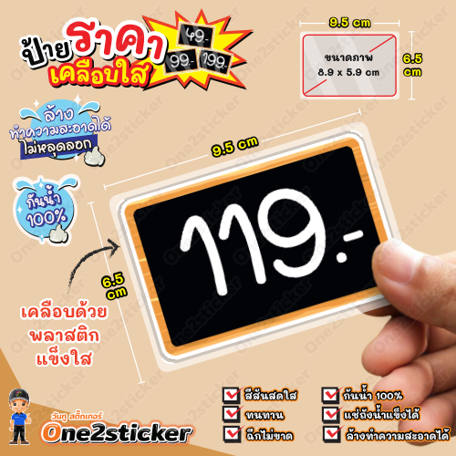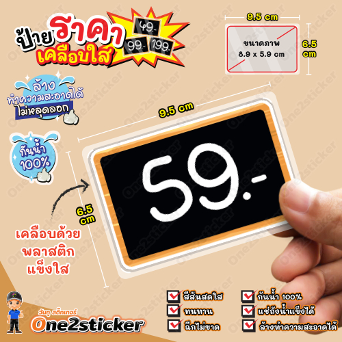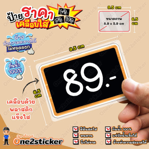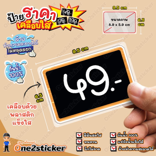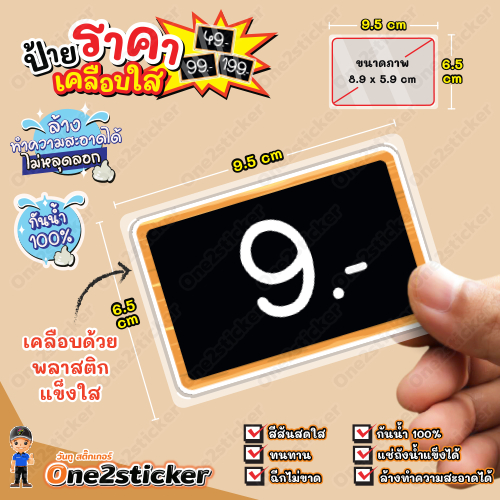ป้ายราคาสีดำ ลงท้ายเลข 9 ขนาดเล็ก 9.5 cm x 6.5 cm กันน้ำ100% (มี 20 แบบ ให้เลือก)