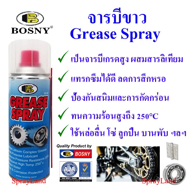 Bosny B115 สเปรย์ จารบีขาว จารบีเกรดสูง ผสมสารลิเทียม