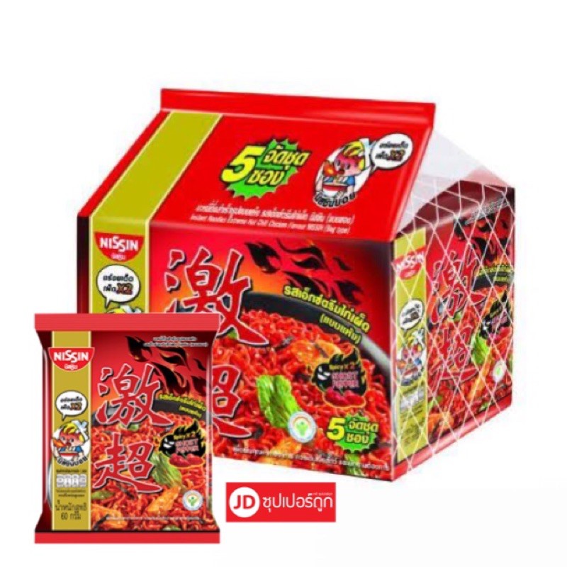 นิชชิน รสเอ็กซ์ตรีมไก่เผ็ด แบบแห้ง (แพ็ค 5 ซอง)
