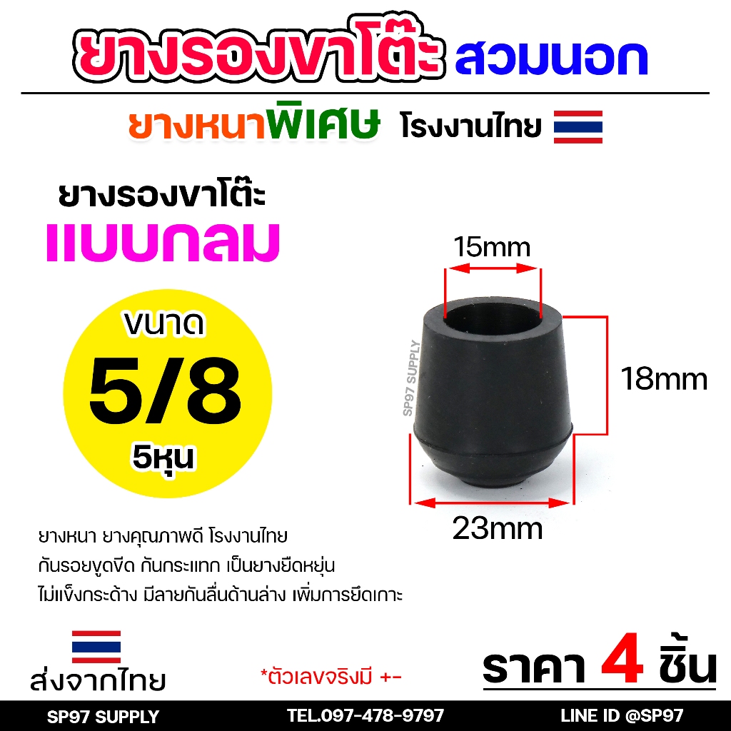 (แพคละ4ชิ้น) ยางรองขาโต๊ะ ยางรองขาเก้าอี้ แบบกลม ขนาด 5/8 นิ้ว (สวมนอก) รุ่นหนา งานไทย