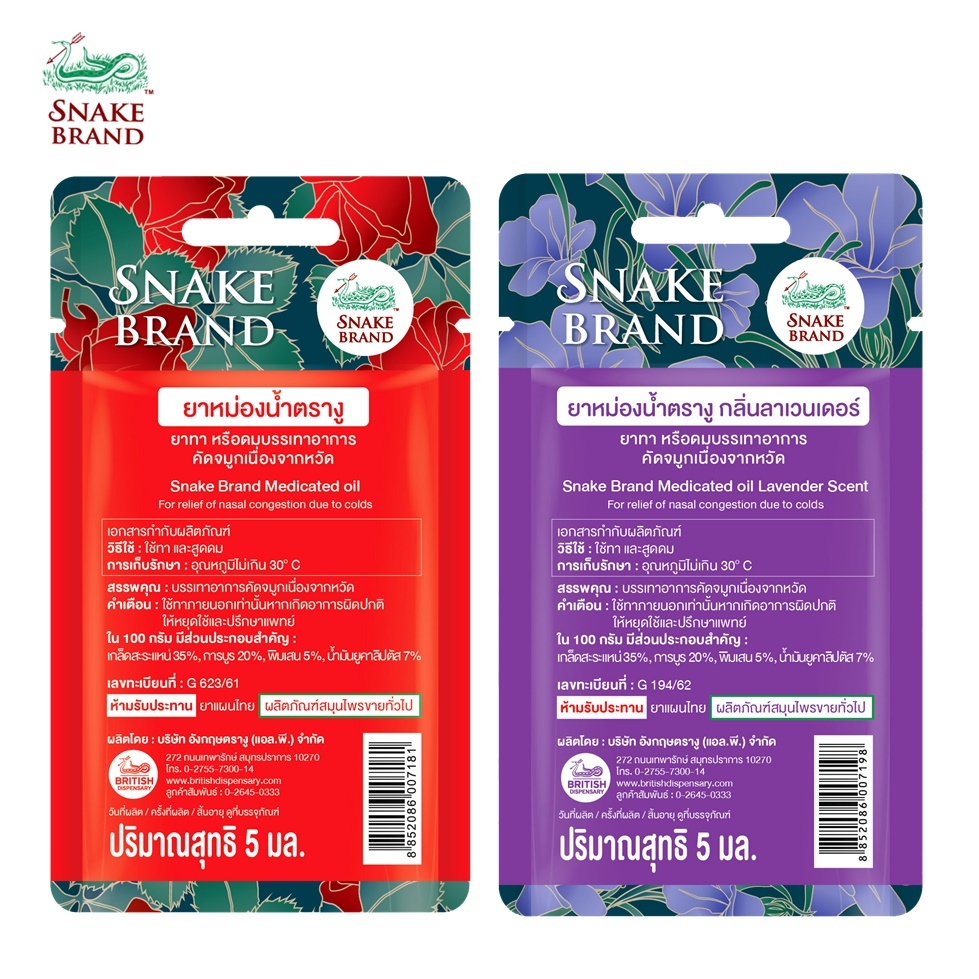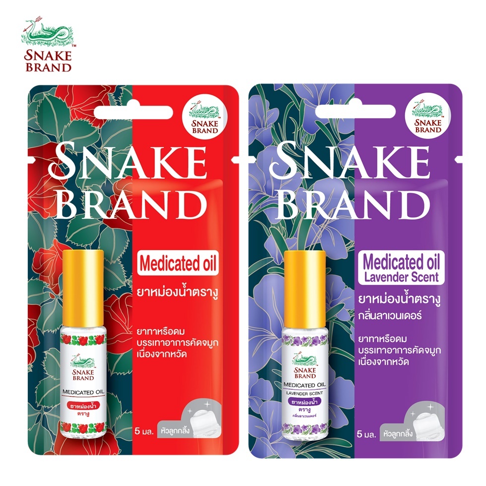 Snake Brand ยาหม่องน้ำตรางู 5 มล. คละกลิ่น คลาสสิค + ลาเวนเดอร์ | Snake Brand Medicated Oil Classic & Lavender Set