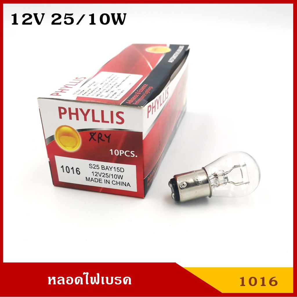 PHYLLIS หลอดไฟเบรค 12V 25/10W 2จุด รถยนต์ [#1016 ใส ตรง 10หลอด]