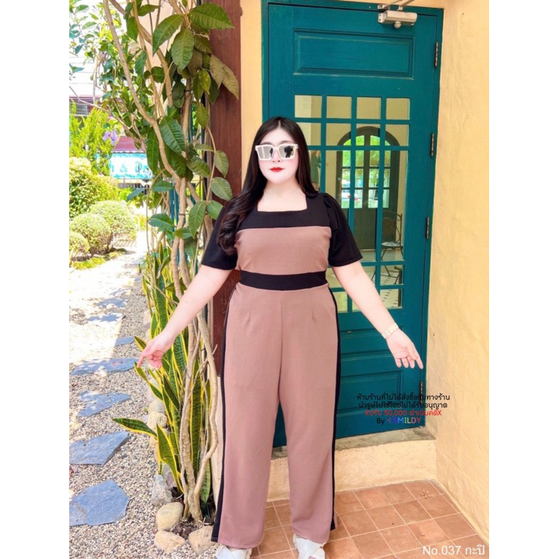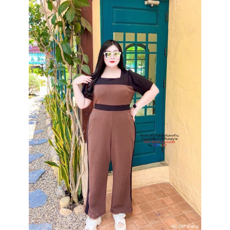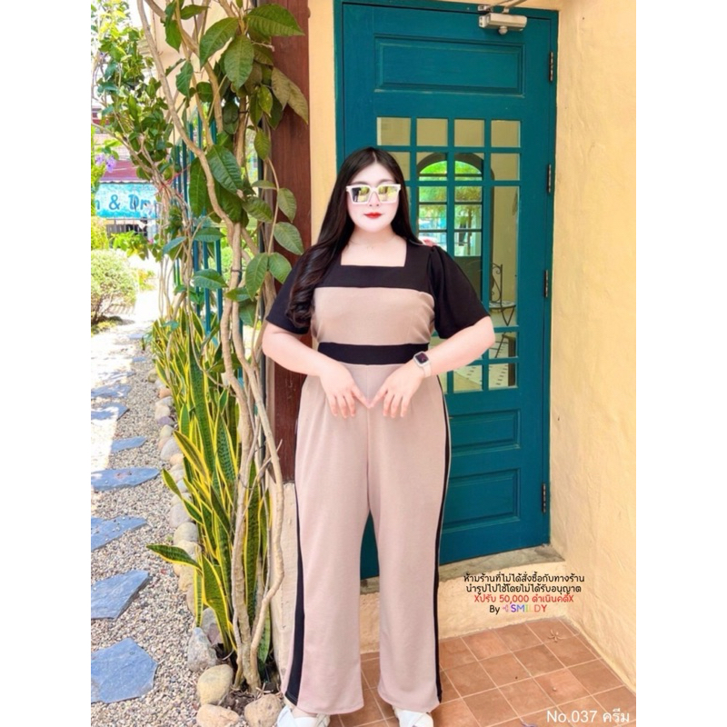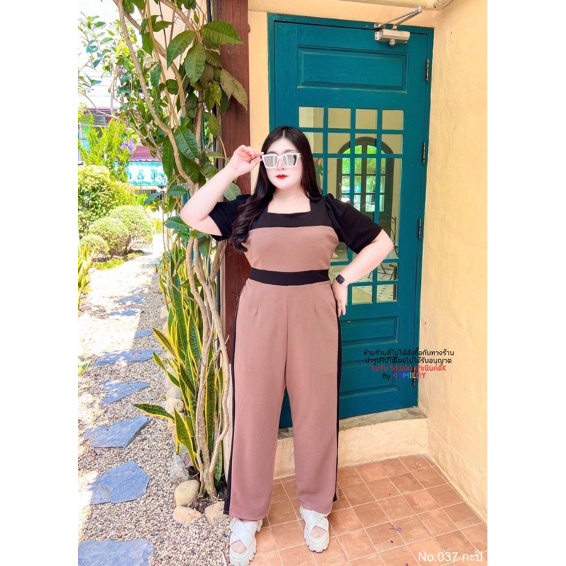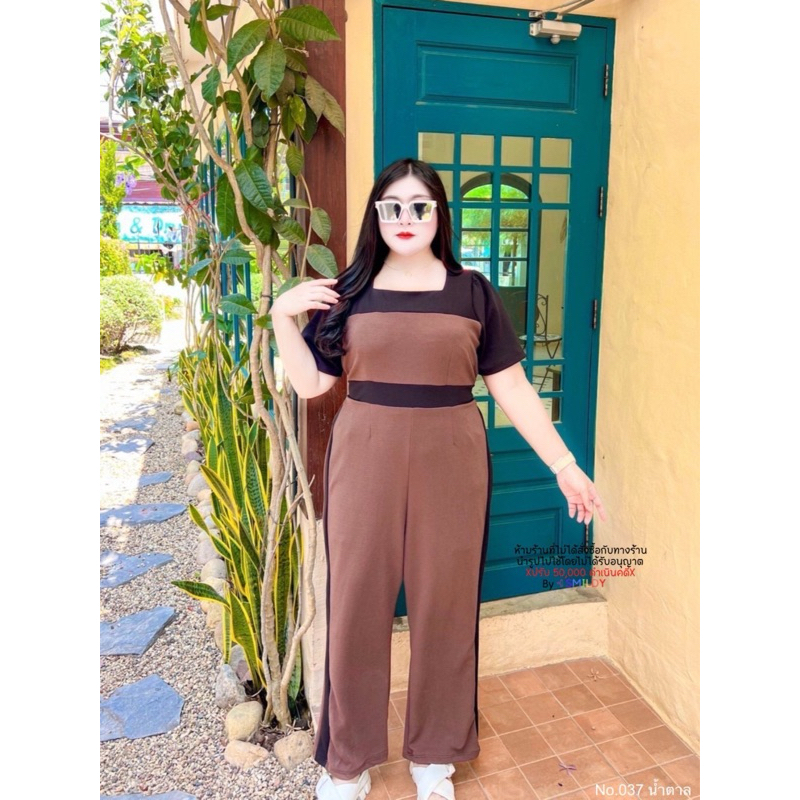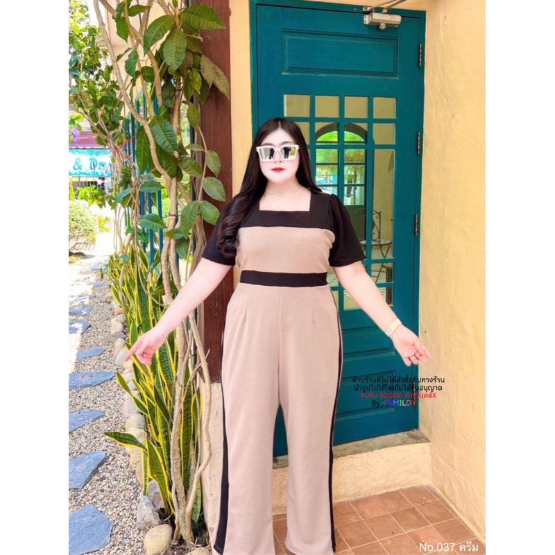 สาวอวบ จั๊มยาวสาวอวบ จั๊มสูทขายาว ทรงผอม แถบข้าง คอเหลี่ยม อก 38 40 42 44 46 48 50 52