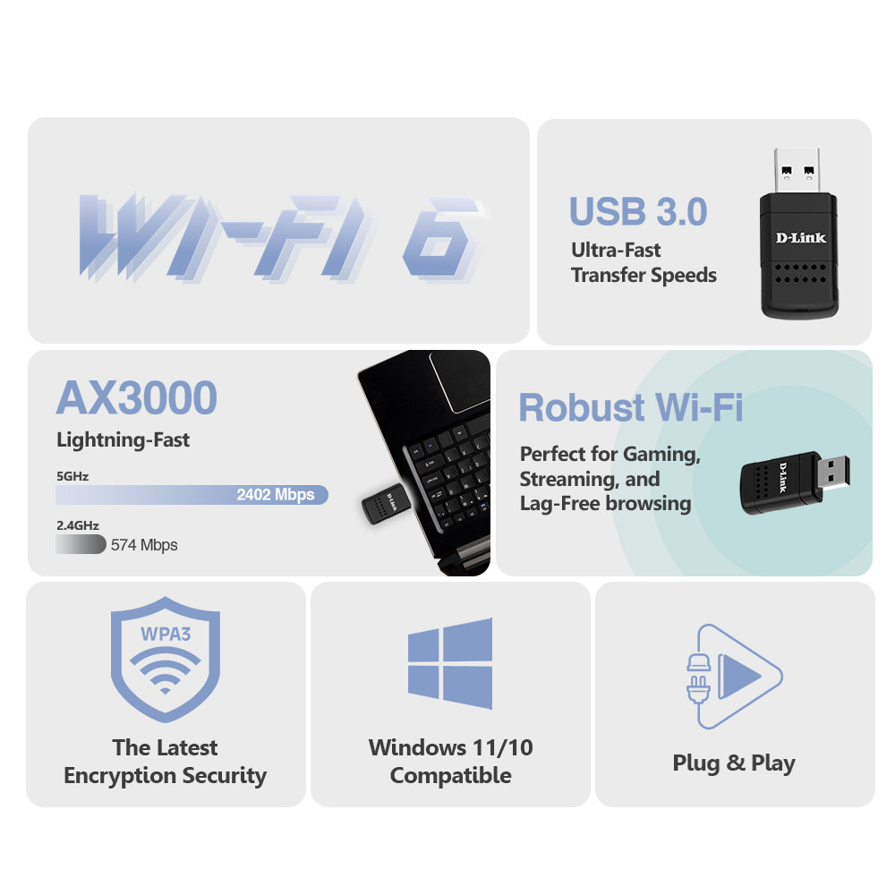 D-Link DWA-X3010 Wireless USB Adater Wi-Fi 6 AX3000