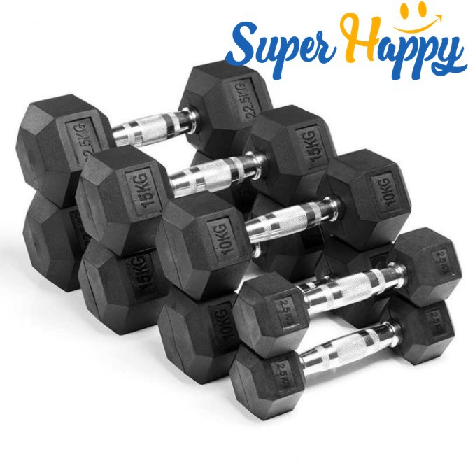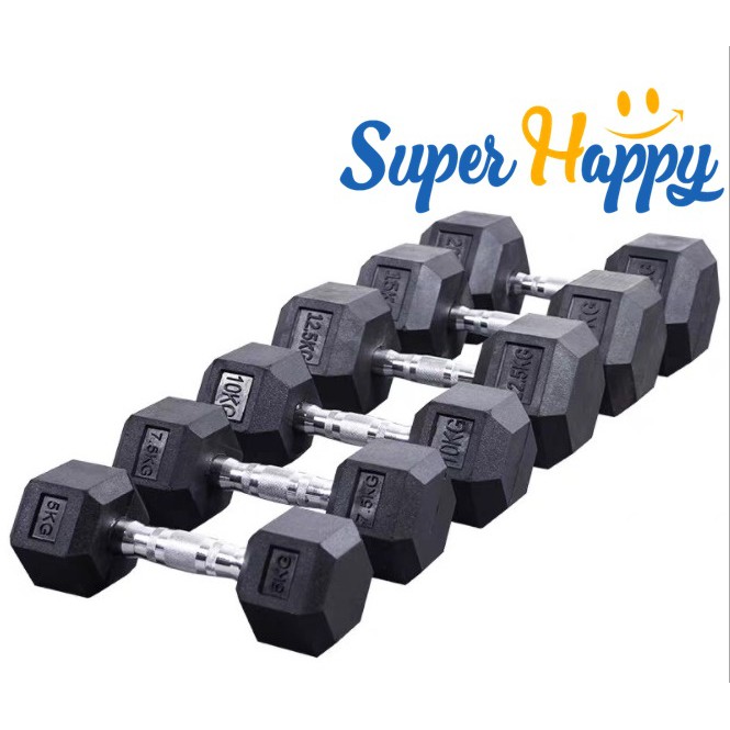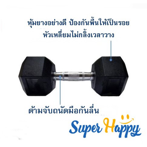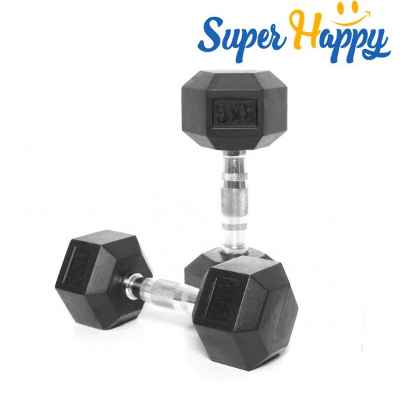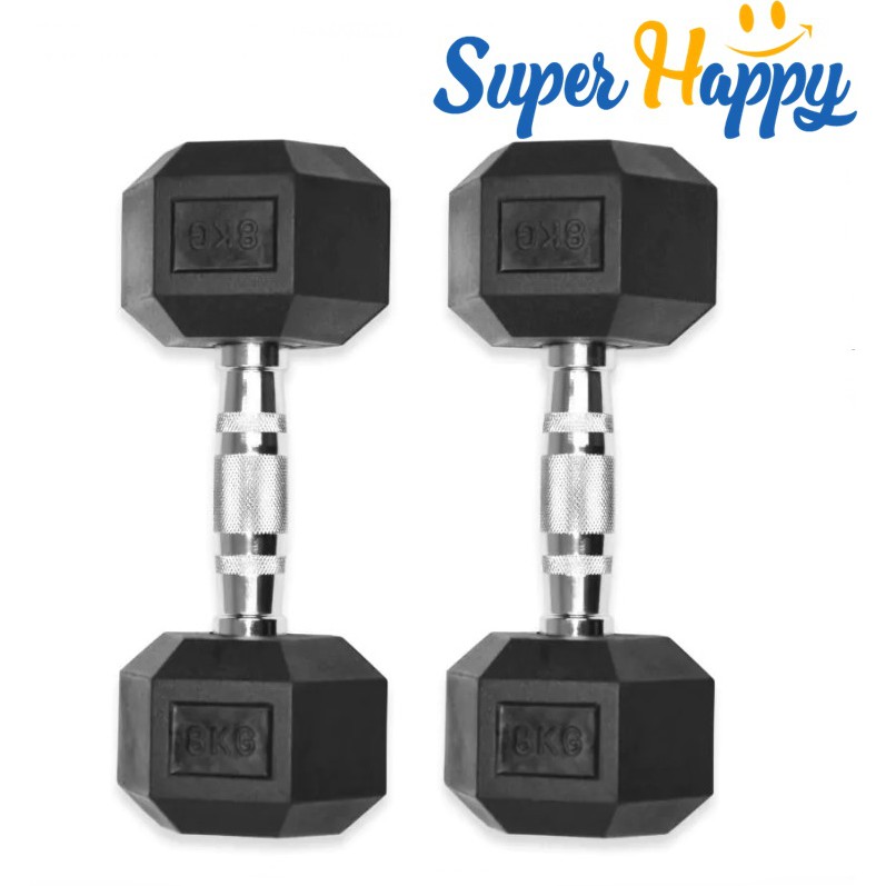 🔥ดัมเบลยกน้ำหนัก🔥 ดัมเบลหกเหลี่ยมหุ้มยางอย่างดี รุ่น Hex Rubber Dumbbell 8 Kg. (1 ข้าง) 🏋️