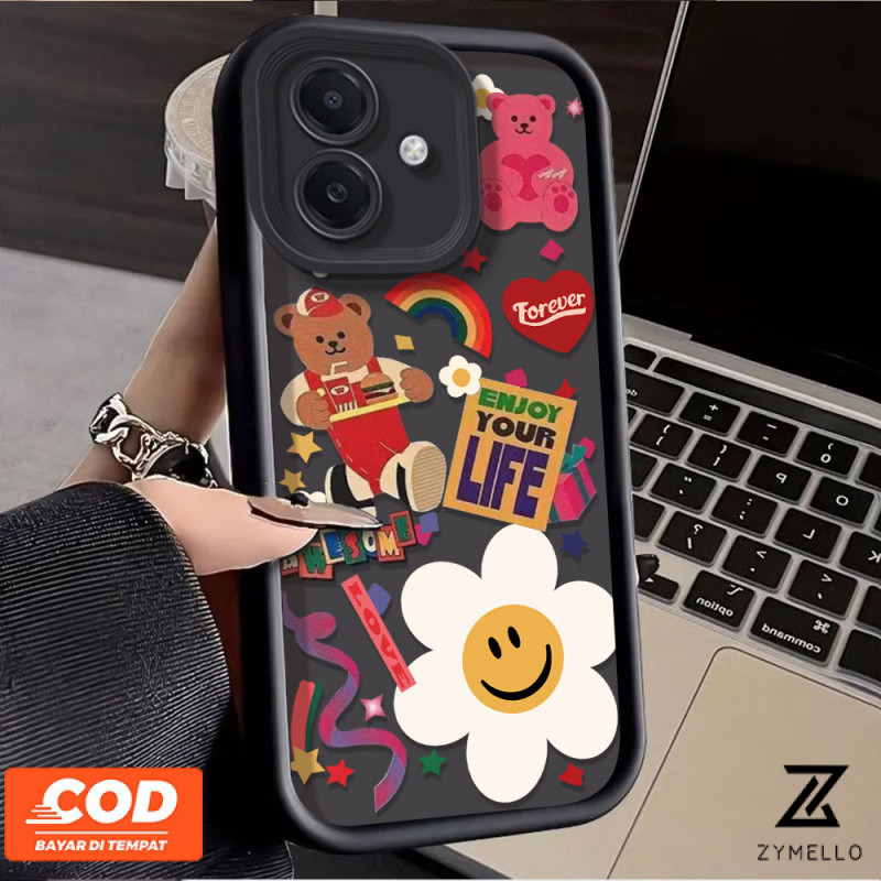 กรณีoppo Reno 13F 5G Reno 12 Reno11 F Reno 11 Reno 10 Reno 8T Reno 8Z Reno7 Reno8 Reno4 Reno5 Realme C65 C61 C55 C53 C51 หมายเหตุ 50 หมายเหตุ 60 การ์ตูนสติกเกอร์ดอกไม้หมีซิลิโคนโพธิ์