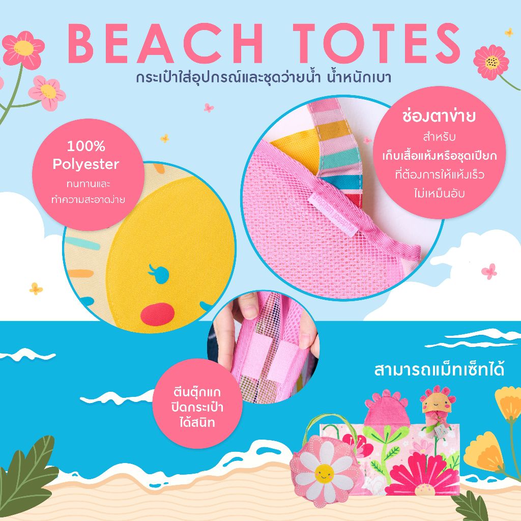 Stephen joseph กระเป๋าชายหาดเด็ก ยอดนิยมจากอเมริกา จุของได้เยอะ Beach tote bag น่ารักเข้าชุดกับผ้าเช็ดตัว