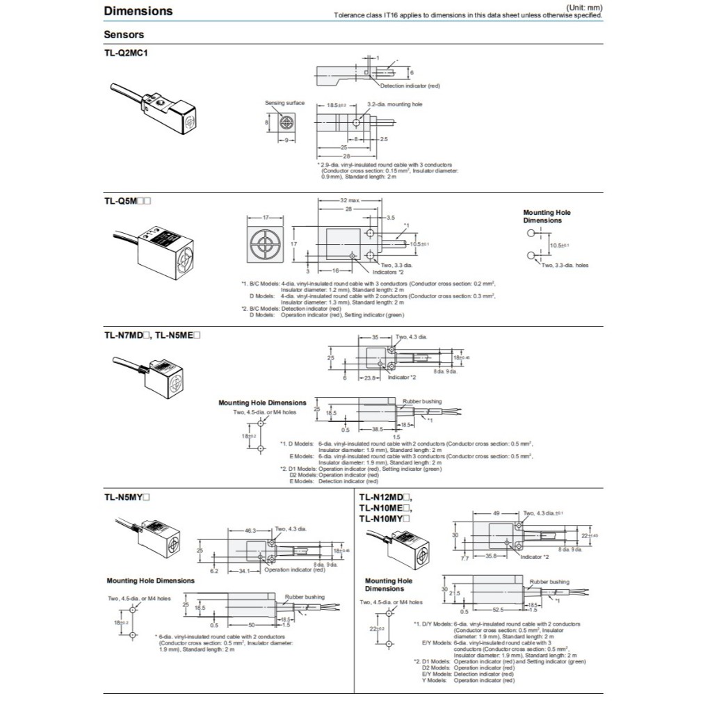 TL-Q5MC1 OMRON Proximity Sensor เซ็นเซอร์ตรวจจับระยะใกล้ ระยะตรวจจับ 5 mm. NPN-NO, ยาว 2M,DC 3-Wire 17x17x28mm. พร้อมส่ง