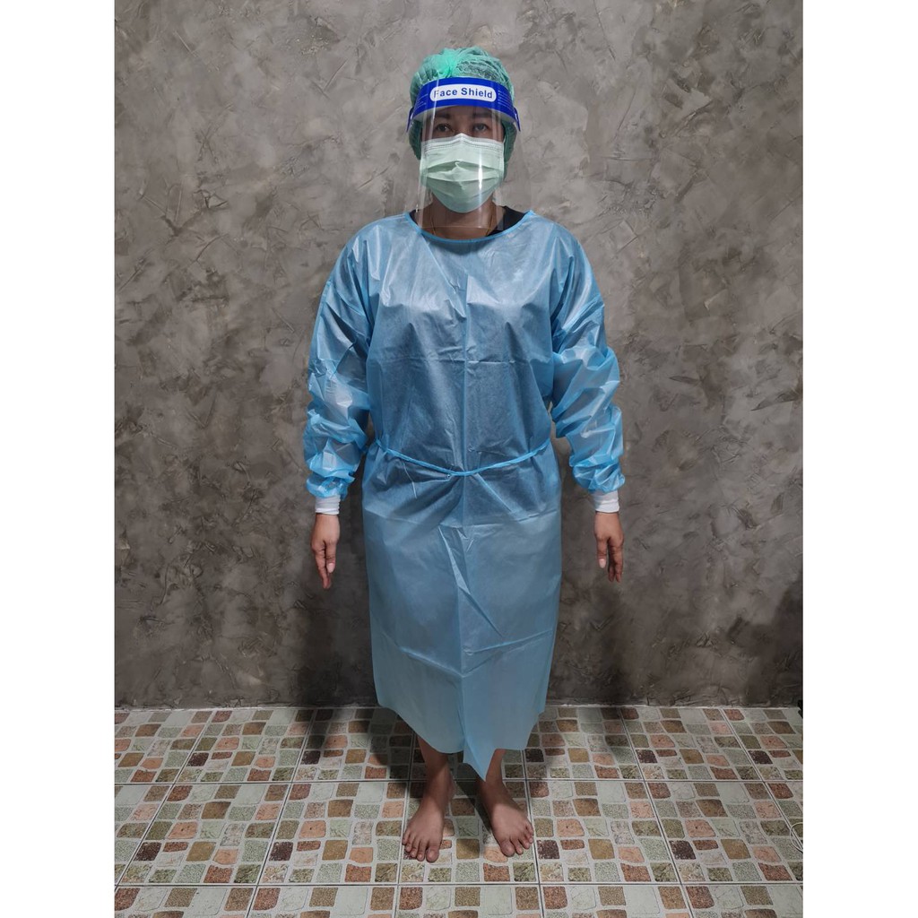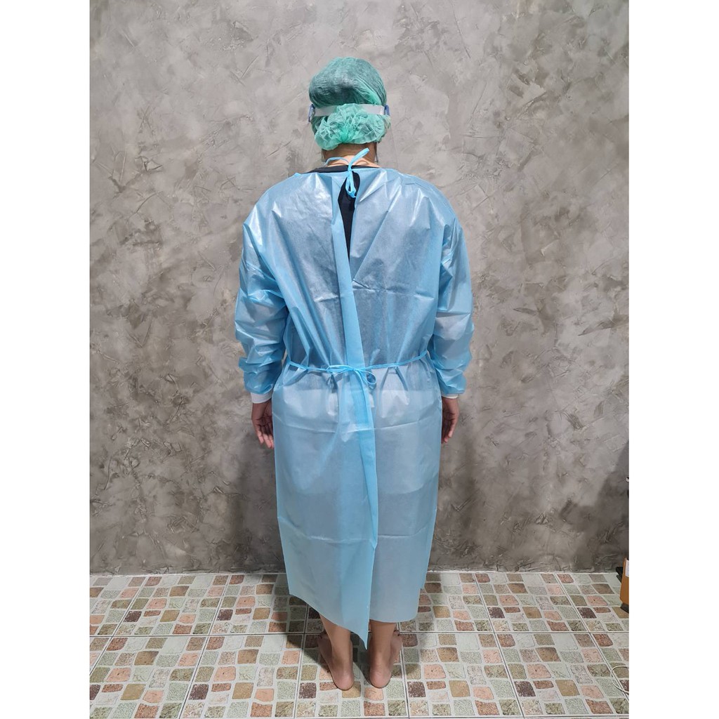 ชุดกาวน์ใช้แล้วทิ้ง ชุด PP Isolation Gown แบบผูกเชือกด้านหลัง เสื้อกาวน์ใช้แล้วทิ้ง