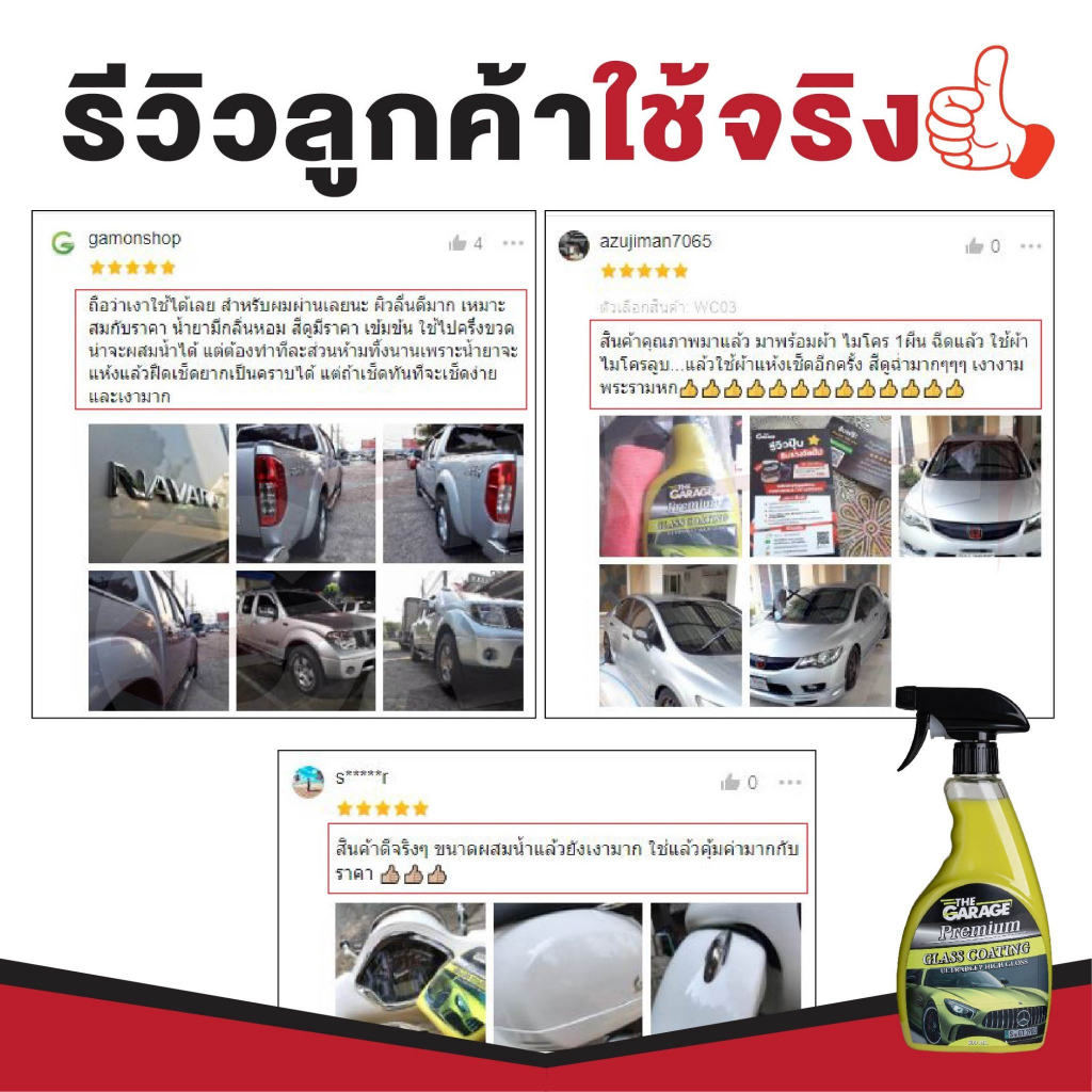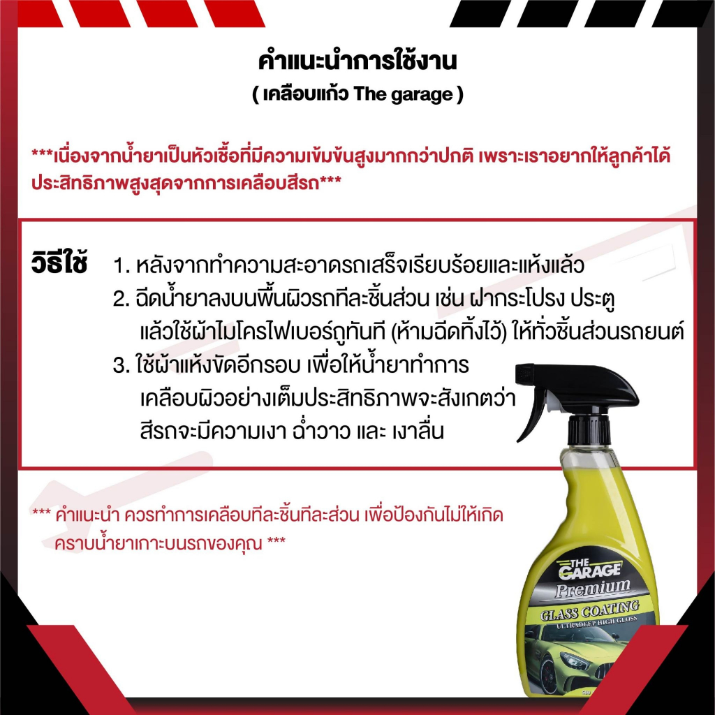 สเปรย์เคลือบแก้ว สเปรย์เคลือบเงา ( WC ) น้ำยาเคลือบสีรถwax (มี อย ถูกต้อง)THE GARRAGE แถม ฟรีผ้าไมโครไฟเบอร์