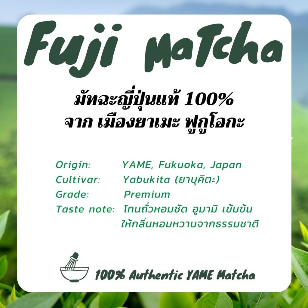 Wishyouwell FUJI Matcha(A) ฟูจิมัทฉะ มัทฉะโทนถั่ว เกรดพรีเมียม เมืองยาเมะ Yame Fukuoka ขนาด 30g.
